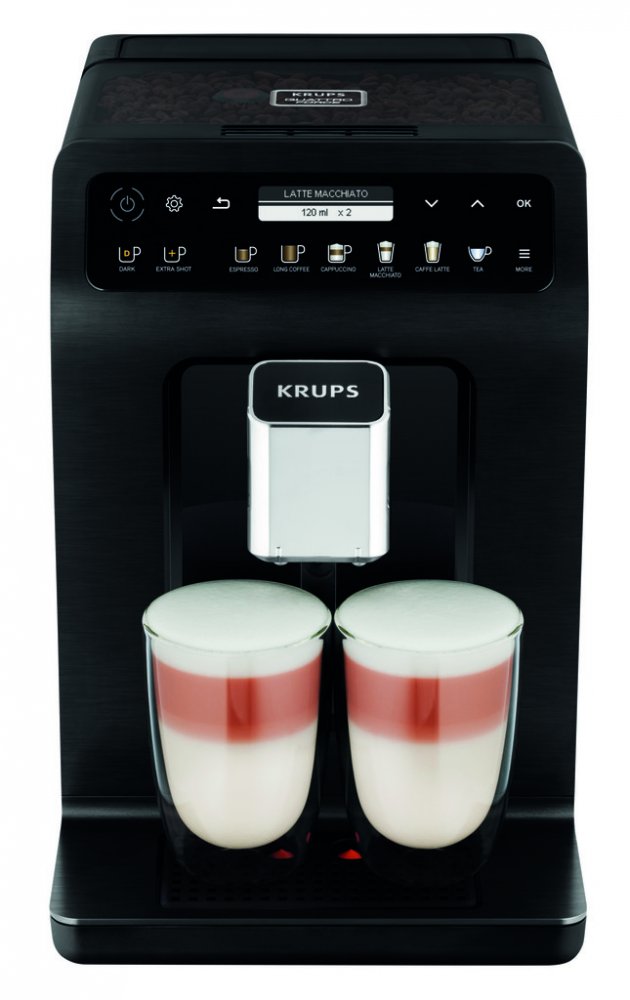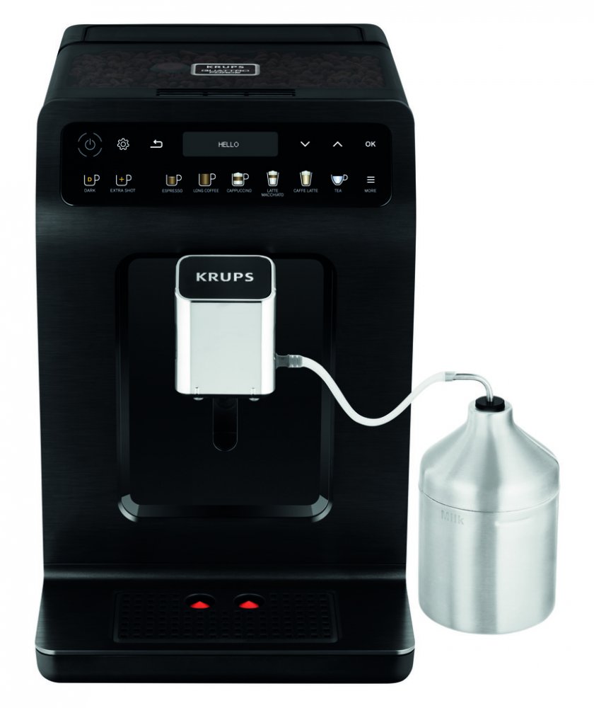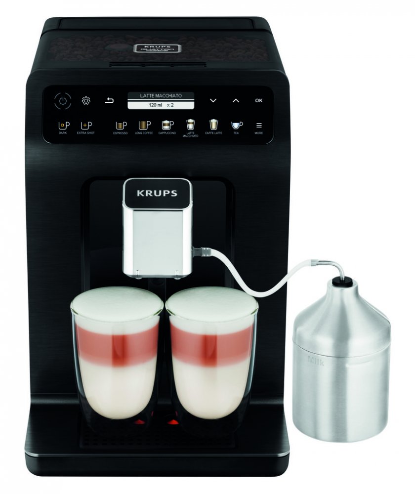 Krups černá Dotykové s integrovanou nádobou na mléko 15 bar 2.3 l 260 g 158 mm 1 dotykový displej pro latté sklenice a termohrnky s nádržkou na vodu 1450 W ocelové 3 8.4 kg 37.1 cm 27.7 cm 47.4 cm pro 3-4 osoby standardní 19 standardní