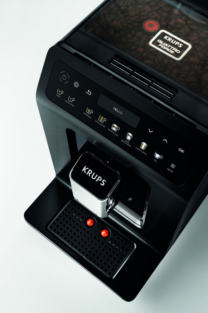 * Systém Quattro Force pokrývá každý krok přípravy dokonalého espressa, optimalizované mletí, pěchování, filtrování a vypouštění