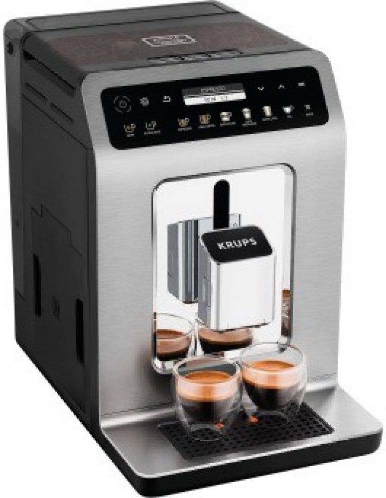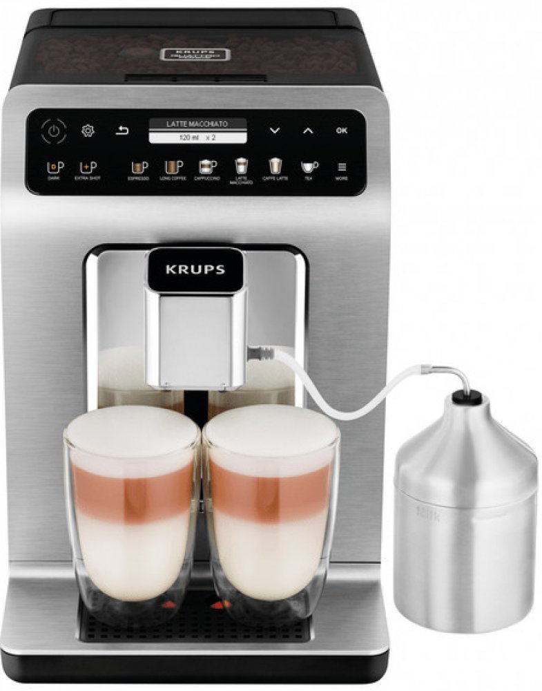 automatický kávovar • tlak 15 bar • technologie Krups Quattro Force • kónický Active Speed mlýnek • pěchovací systém UltraFlat • patentovaný spařovací systém Thermoblock • příprava nápoje jedním stiskem • velký OLED displej • 19 receptů s možností osobního nastavení • příprava dvou šálků současně • objem nádoby na vodu 2,3 l • automatické čištění • příkon 1 450 W
