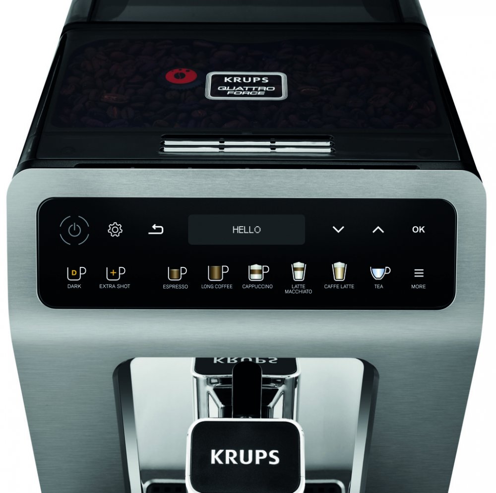Kávovar je vybaven technologií Krups Quattro Force, která zajišťuje vyváženou chuť kávy s plným aroma. Každý krok přípravy je optimalizován tak, aby každá fáze byla co nejlepší, od mletí až po konečnou přípravu celého nápoje. Můžete si být jisti, že výsledný nápoj bude připraven za krátkou dobu a v té nejvyšší kvalitě.