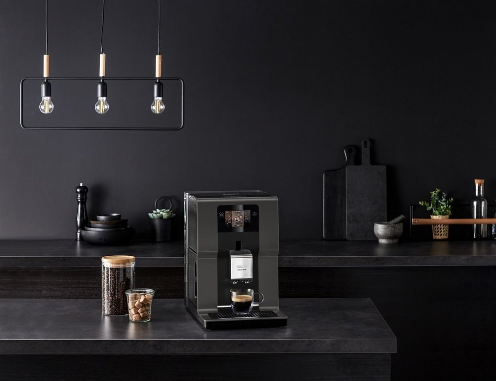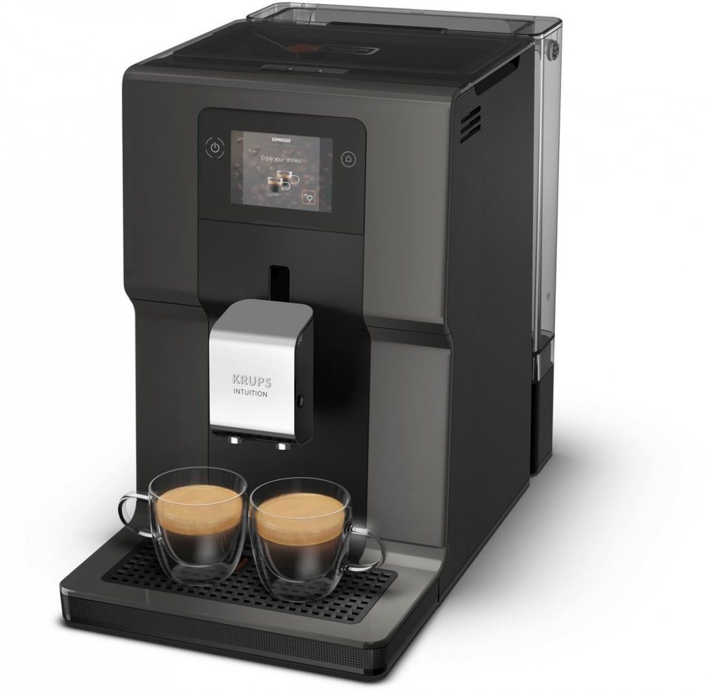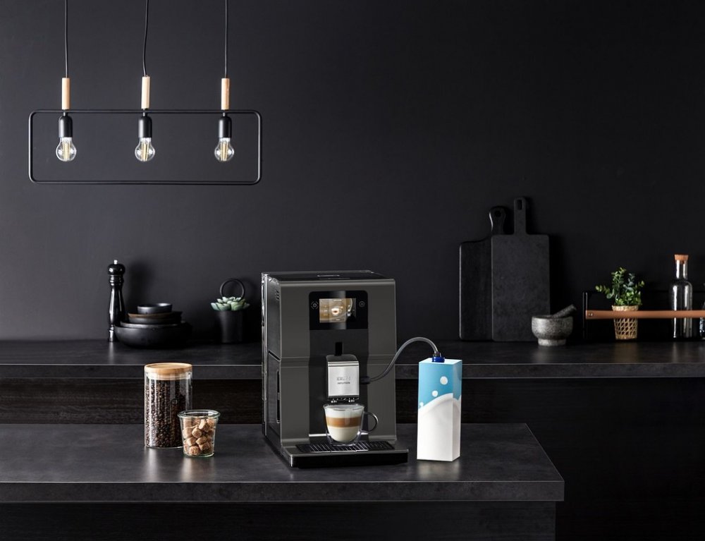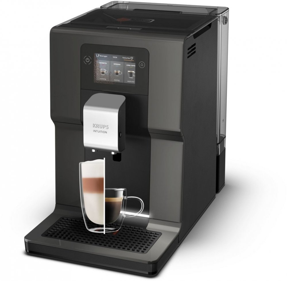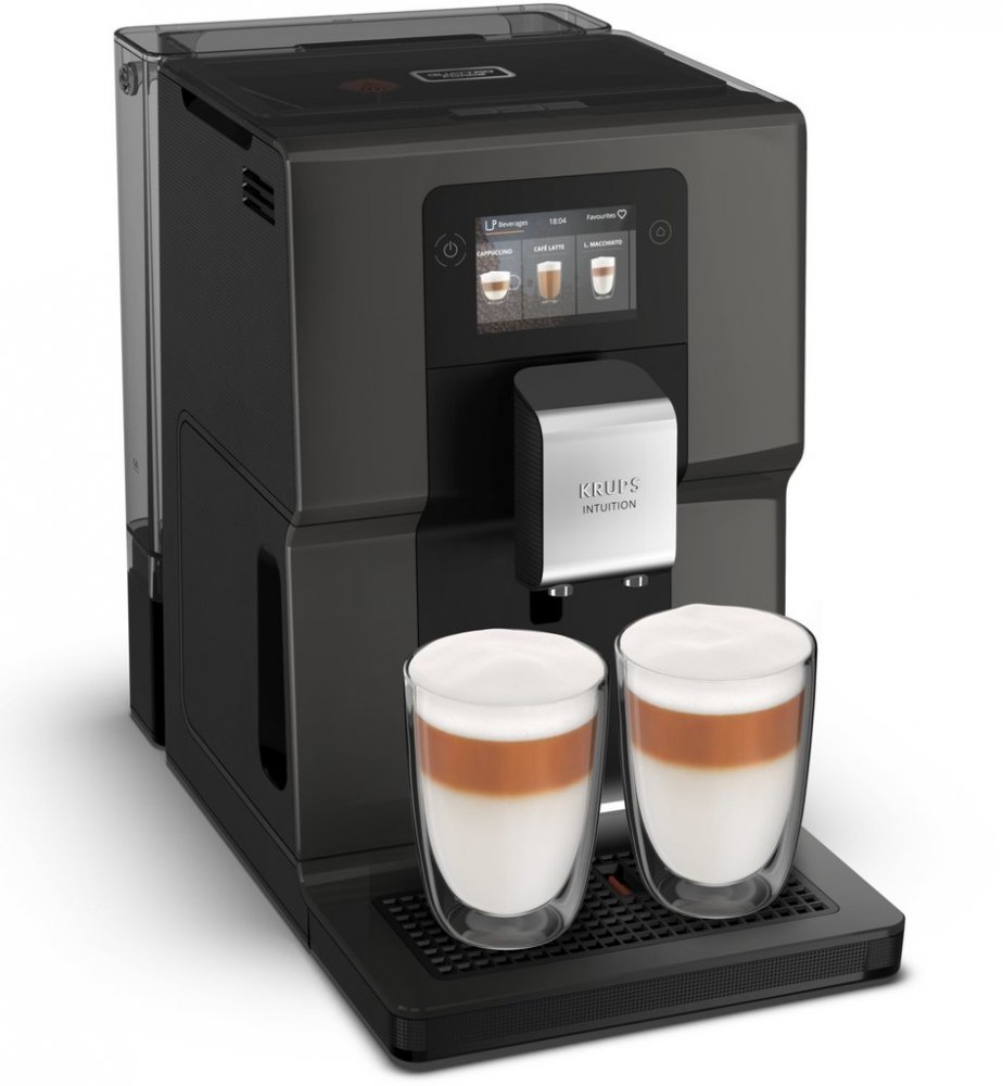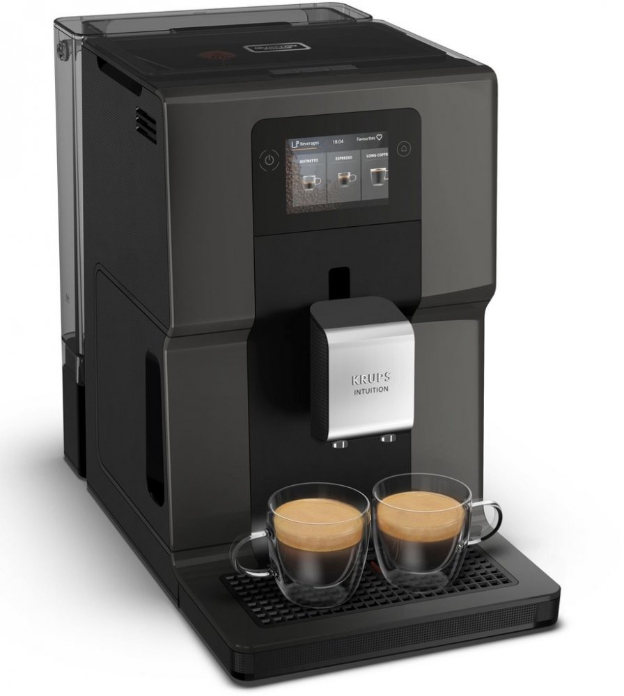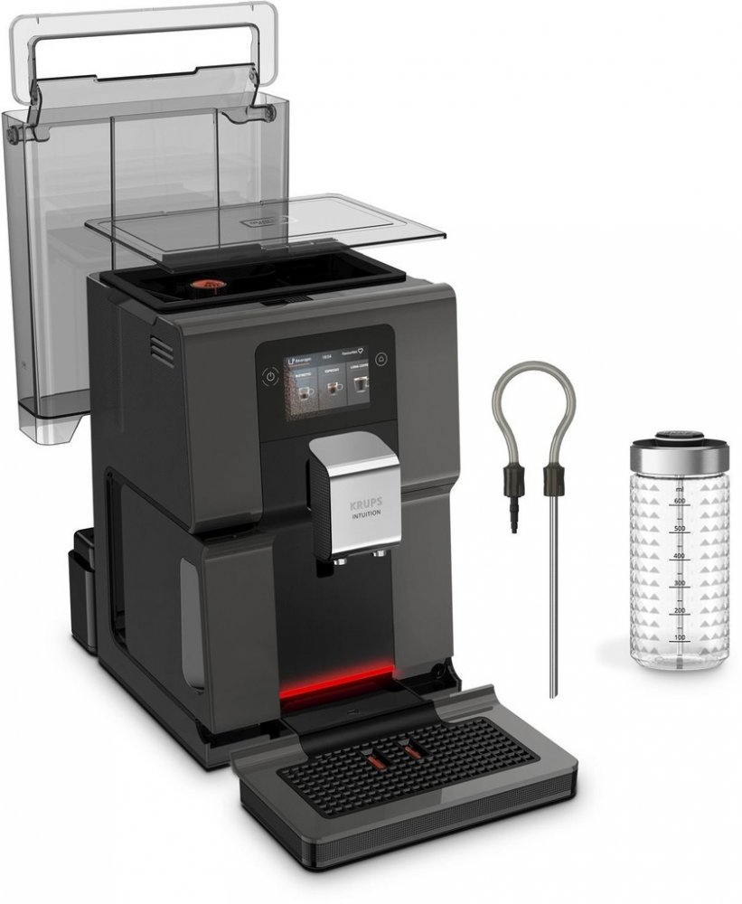 Krups černá dotykové s trubičkou z krabice 15 bar 3 l 250 g 9 porcí 140 mm barevný TFT displej pro běžné šálky s nádržkou na vodu 1450 W ocelové 5 8.01 kg 40 cm 28 cm 44 cm 8 pro 5+ osob 15 testováno na rostlinné mléko