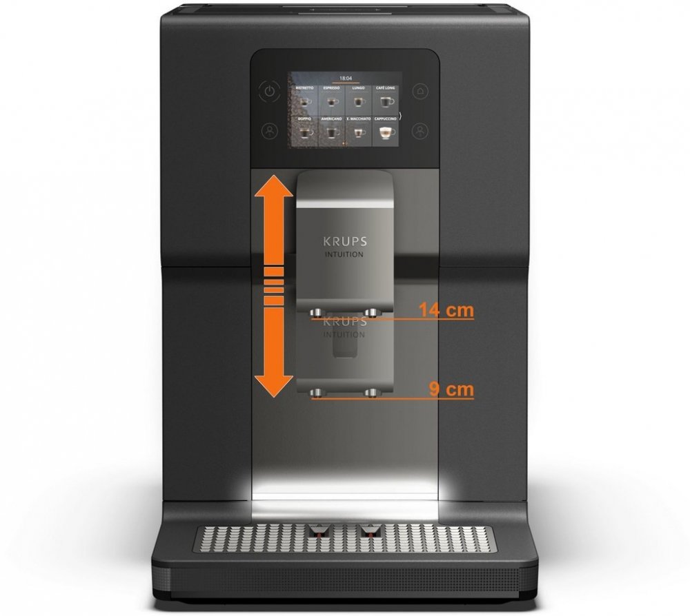 Krups šedá dotykové s integrovanou nádobou na mléko 15 bar 3 l 1.2 m 250 g 600 ml 9 porcí 140 mm 1 dotykový displej pro běžné šálky s nádržkou na vodu 1450 W ocelové 5 8.15 kg 40 cm 28 cm 44 cm 2 pro 5+ osob standardní 15 standardní