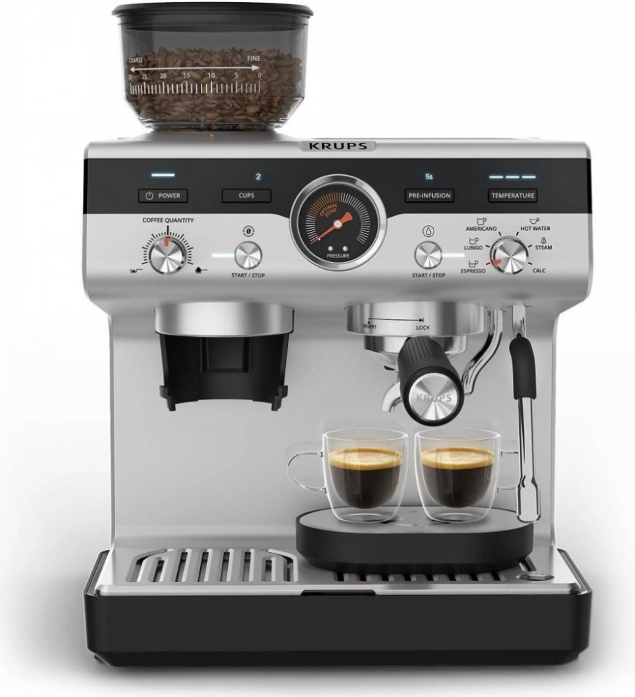 Select brand:ÚvodHlavní infoGalerieTechnické specifikaceKrups Precision XP801T10Designový pákový kávovar Krups Precision potěší každého uživatele, dychtícího po denním rituálu se svým šálkem kávy. Vyberte si ze 30 přesných nastavení vestavěného konického mlýnku pro mletí kávových zrn, přinášejících zaručeně čerstvou, aromatickou kávu dle vašich preferencí. Vykouzlete si dokonalý šálek oblíbeného nápoje s dotykem sametové pěny, vytvořené parní tryskou. Intuitivní rozhraní s přímým přístupem k ovládání na předním panelu vám umožní připravit svůj oblíbený šálek kávy od cappuccina po latté bez námahy. Pro dokonalou kávu, která naplní vaše smysly.Pákový kávovar s integrovaným mlýnkemKávovar disponuje integrovaným mlýnkem pro přípravu dokonalého espressa z čerstvě namleté kávy. Nabízí 30 variant nastavení podle druhu jemnosti namletí kávových zrn, ovládajících vaše smyslové buňky. Chuť a aroma doma připravené kávy stejné kvality, jako byste si ji právě objednali v luxusní kavárně.Efektivní mletí díky...