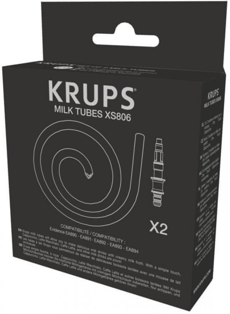 Pokud máte doma kávovar KRUPS, mohla by vám přijít vhod sada náhradních trubiček na mléko KRUPS XS806000 pro kávovary řady Evidence. Užijete je pro výrobu cappuccina i latte macchiato i dalších nápojů. KRUPS XS806000 pomáhá s přípravou mléčného nápoje přímo z kartonu mléka nebo karafy. Balení obsahuje 2 ks trubiček.Klíčové vlastnosti sady trubiček na mléko KRUPS XS806000 Sada náhradních trubiček na mléko KRUPS XS806000 je určena pro přístroje KRUPSJe kompatibilní se sadou EvidencePřipravíte s nimi cappuccino i latte macchiatoKRUPS XS806000 připravují mléčné nápoje přímo z mléčné krabice nebo z karafyV balení najdete 2 ks trubičekKompatibilita:KRUPS EA897B10 Evidence Eco KRUPS EA891110 Evidence White s nádobou na mléko KRUPS EA895831 Evidence One Black KRUPS EA895N10 Evidence One Meteor Grey KRUPS EA894T10 Evidence Plus Titan s nádobou na mléko KRUPS EA890810 Evidence Black KRUPS EA89ZB10 Evidence Classic black