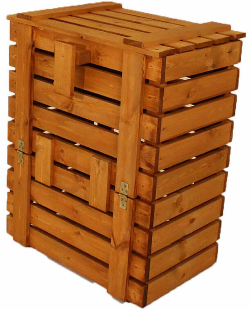 Robustní konstrukce tvořená z 19 mm tlustých borovicových prken. Na rozdíl od levných plastových kompostérů se tento nekroutí ani v létě, nepraskne v zimě.