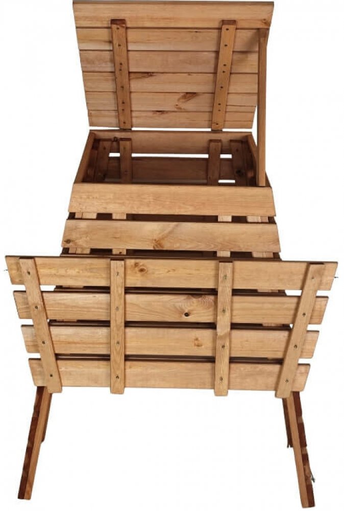 Robustní konstrukce tvořená z 19 mm tlustých borovicových prken. Na rozdíl od levných plastových kompostérů se tento nekroutí ani v létě, nepraskne v zimě.