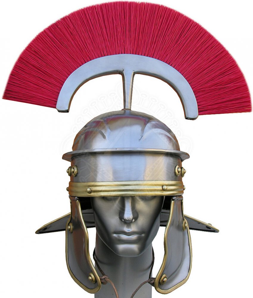 Imperiální Galská přilba, typ I Tato přilba byla běžná v polovině 1. stol. n.l. Příčný chochol byl odznakem hodnosti centuriona. Právě tuto přilbu mohl nosit např. Caelius Rufus. Tuto helmu Vám můžeme vyrobit přesně na míru podle údajů ‘1a’ až ‘1j’ v této tabulce rozměrů. Přečtěte si prosím návod, jak zvolit správnou velikost helmy.