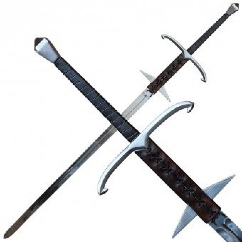 Gotický obouruční meč Remardus II Třída B dle klasifikace zbraní na šerm Celková délka cca 185cm Délka čepele cca 140cm Délka záštity cca 35cm Hmotnost cca 3,98 kg Ocelová hlavice nýtovaná Čepel z pružinové oceli ČSN 14260 kalená v olejové lázni na cca 53 HRC Jedná se o český výrobek. Veškeré uvedené údaje je třeba chápat jako přibližné. Čepel meče je vyrobená z kalené a temperované pružinové oceli dle ČSN 14260, která není korozivzdorná. Hlavice a záštita je též z oceli, jedná se o odlitek či výkovek. Jílec tvoří stopka čepele obložená dřevem a ovinutá pevnou kůží. Objednáte-li si verzi meče na historický | scénický šerm, bude síla hrany čepele 2-3mm silná a špička čepele zaoblená. Meč s takovýmito vlastnostmi lze použít na kontaktní šerm. Pozor! Neneseme žádnou odpovědnost za případná zranění a škody na majetku vzniklá při použití zde nabízeného meče. Zdůrazňujeme: Vše co s mečem budete dělat, činíte výlučně na své vlastní riziko! Přes velkou pečlivost při výrobě a při výběru materiálů nemůžeme zaručit to, že se čepel či záštita i při patřičném používání nezlomí. Absolutní záruku na lom nemůže poskytnout žádný seriózní výrobce. Každý meč lze nepřiměřeným zacházením zničit. Snažte se protivníkovy seky vykrývat plochou stranou čepele a vyvarovat se přímých úderů ostří na ostří. Seky veďte sportovně správně bez použití přehnané a nepotřebné síly. Meč prosím ukládejte mimo dosah dětí. Při prokázané vadě materiálu poskytneme odpovídající náhradu, a to v zákonné lhůtě v délce dvou let od koupě meče. Záseky na hraně čepele vzniklé během používání jsou symptomem přirozeného opotřebení a nemohou být reklamovány. Před každým použitím čepel zkontrolujte a případná ostrá místa na čepeli opilujte diamantovým pilníkem, brusným papírem nebo jiným obdobným způsobem. Mnohdy nelze ani předejít uvolnění záštity. Zde je třeba učinit přenýtování či utáhnutí hlavice, popřípadě opravu letovaného spoje. Jako provizorní řešení při upevnění záštity se některým šermířům osvědčilo, když vyplnili mezeru mezi záštitou a rukojetí pevným vinutím z rybářského vlasce. Přečtěte si prosím náš: Návod k použití chladných zbraní.