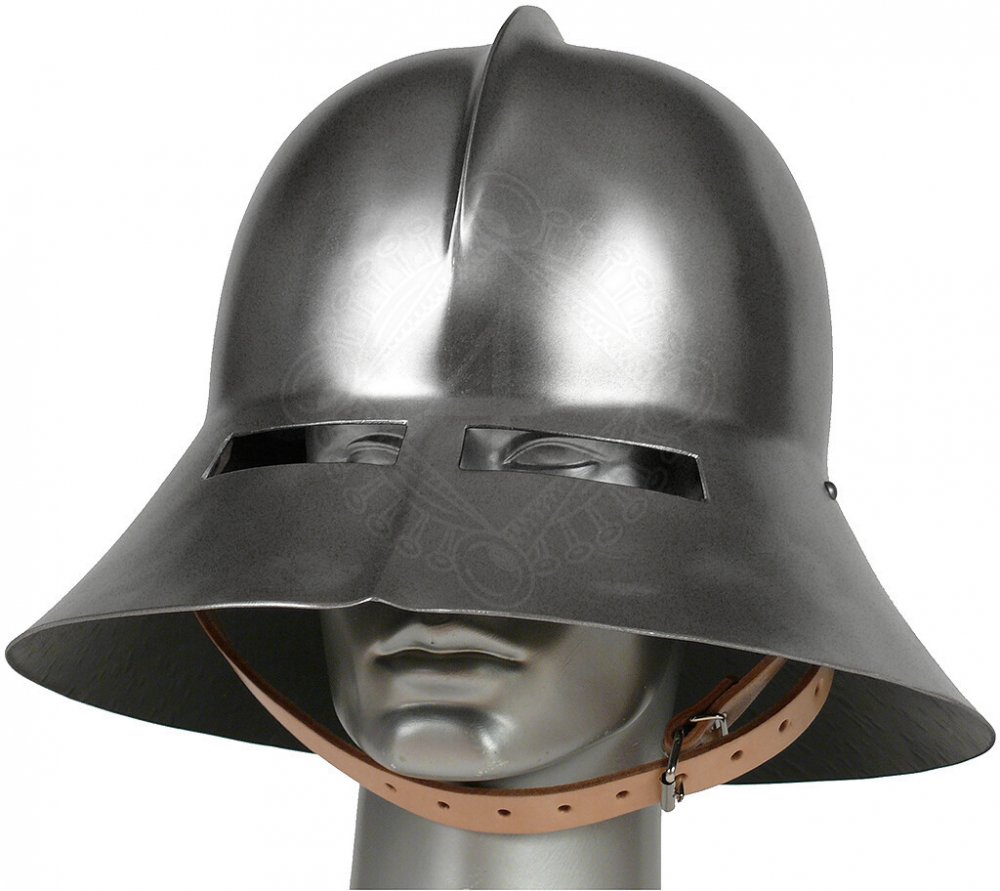 Železný klobouk s půzory, též zvaný jako šalířový klobouk, 15. stol Standardní provedení této helmy zahrnuje vnitřní látkovou výstelku. Tuto helmu Vám můžeme vyrobit přesně na míru podle údajů ‘1a’ až ‘1j’ v této tabulce rozměrů. Přečtěte si prosím návod, jak zvolit správnou velikost helmy.