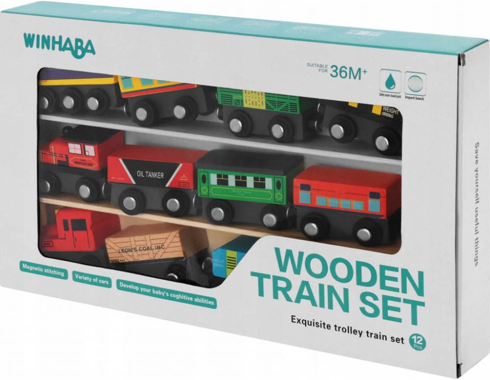PEVNÝ A ODOLNÝ - vláček je vyroben z kvalitního materiálu, kterým je dřevo, díky čemuž je odolný a bude vám dlouho sloužit. Spojení choo-choo s vagóny pomocí magnetů.
