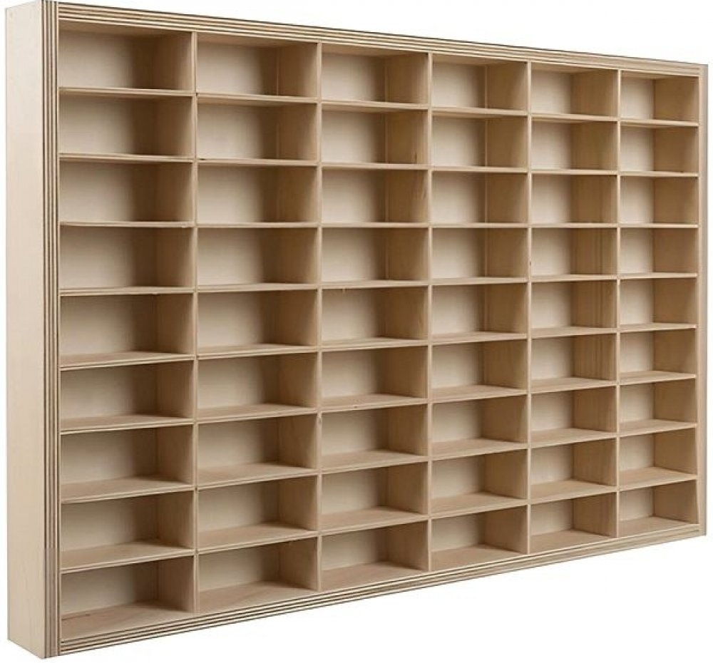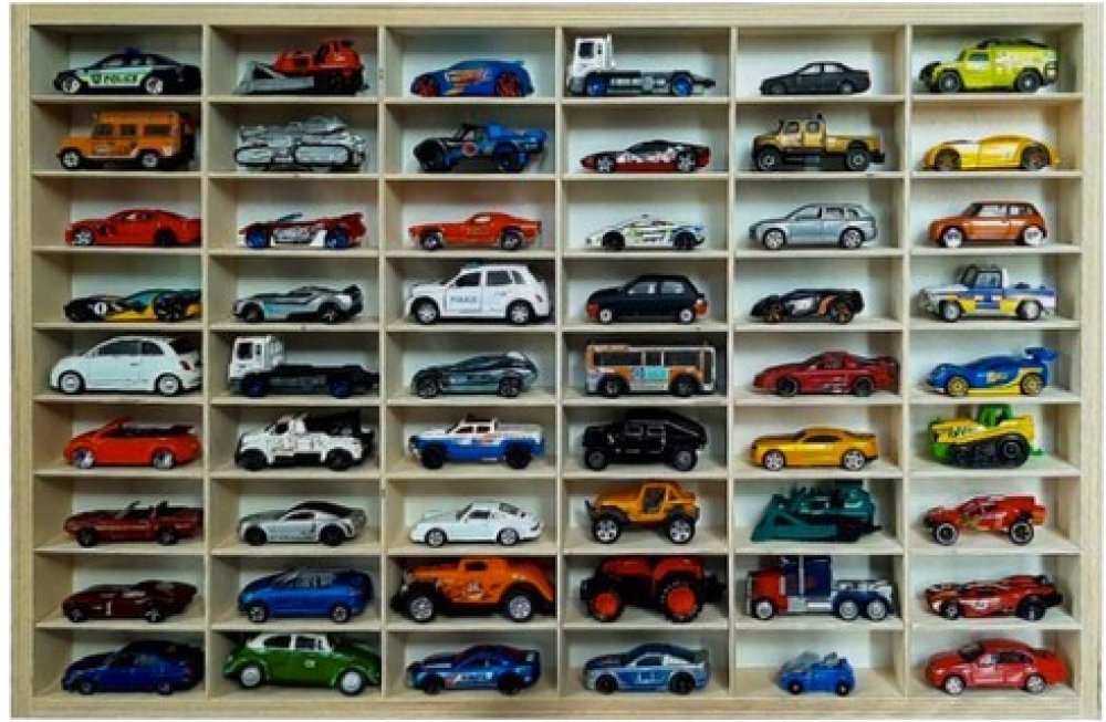 AŽ 54 PŘIHRÁDEK – police má 54 přihrádek, a proto je velmi praktickým řešením pro pořádání aut. Kromě toho je to krásná dekorace místnosti. Každé dítě z ní bude nadšeno.