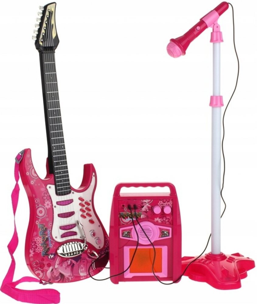 - SPECIFIKACE - barva: růžová; napájení kytary: 3x AA baterie (nejsou součástí); napájení zesilovače: 3x AA baterie (nejsou součástí); rozměry zdroje (výška/šířka): 27x19cm; výška mikrofonu: 63-100cm; rozměry kytary (výška/šířka): 72x24cm; hmotnost: 1,55 kg; hmotnost balení: 1,8 kg.