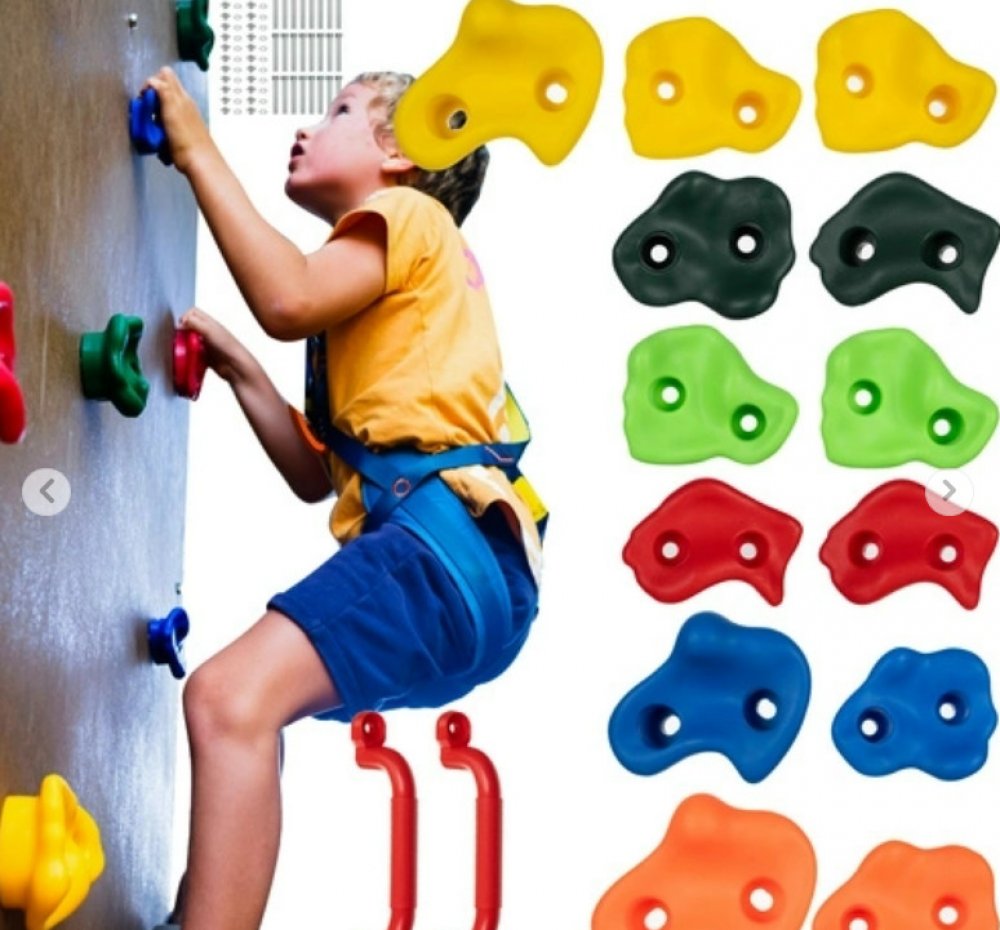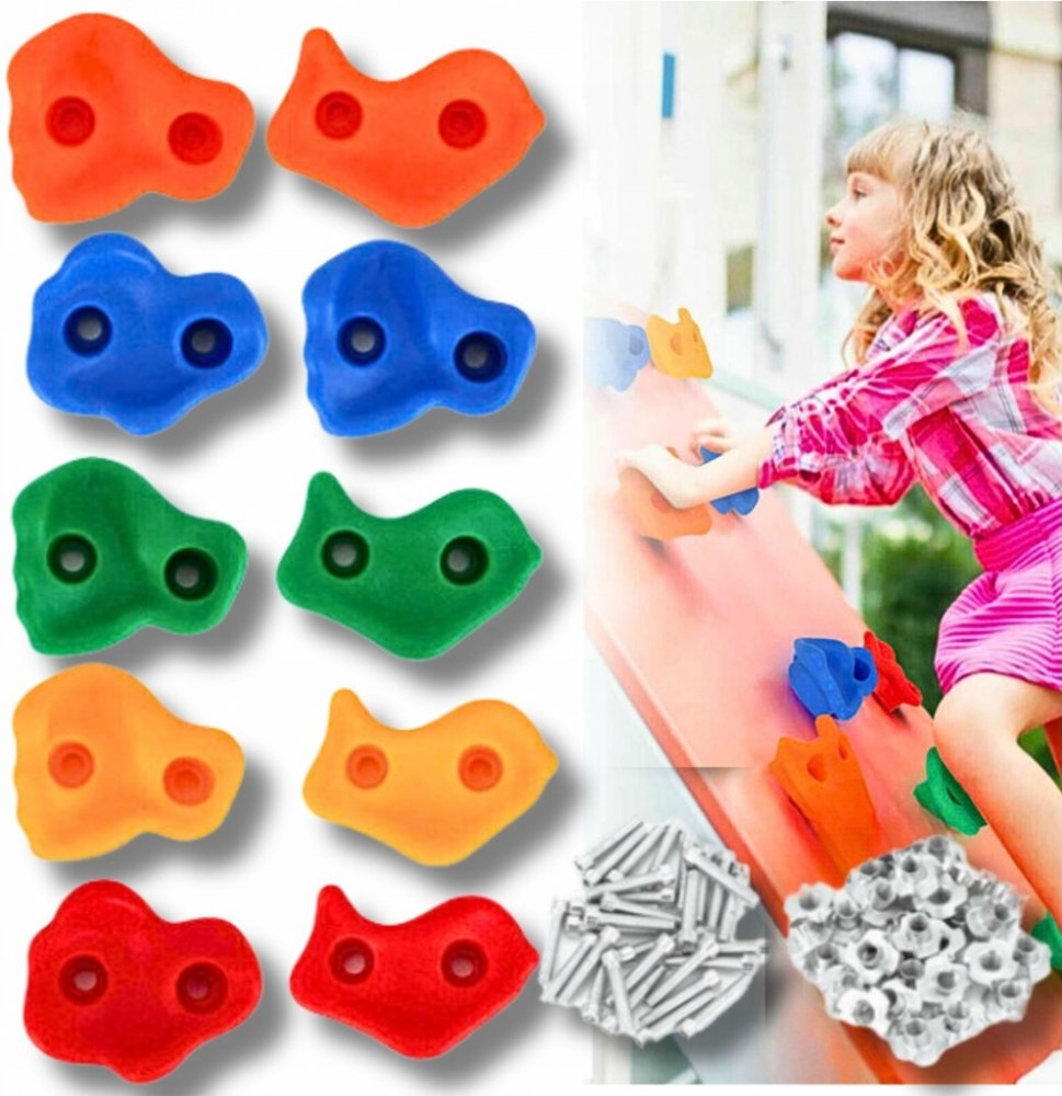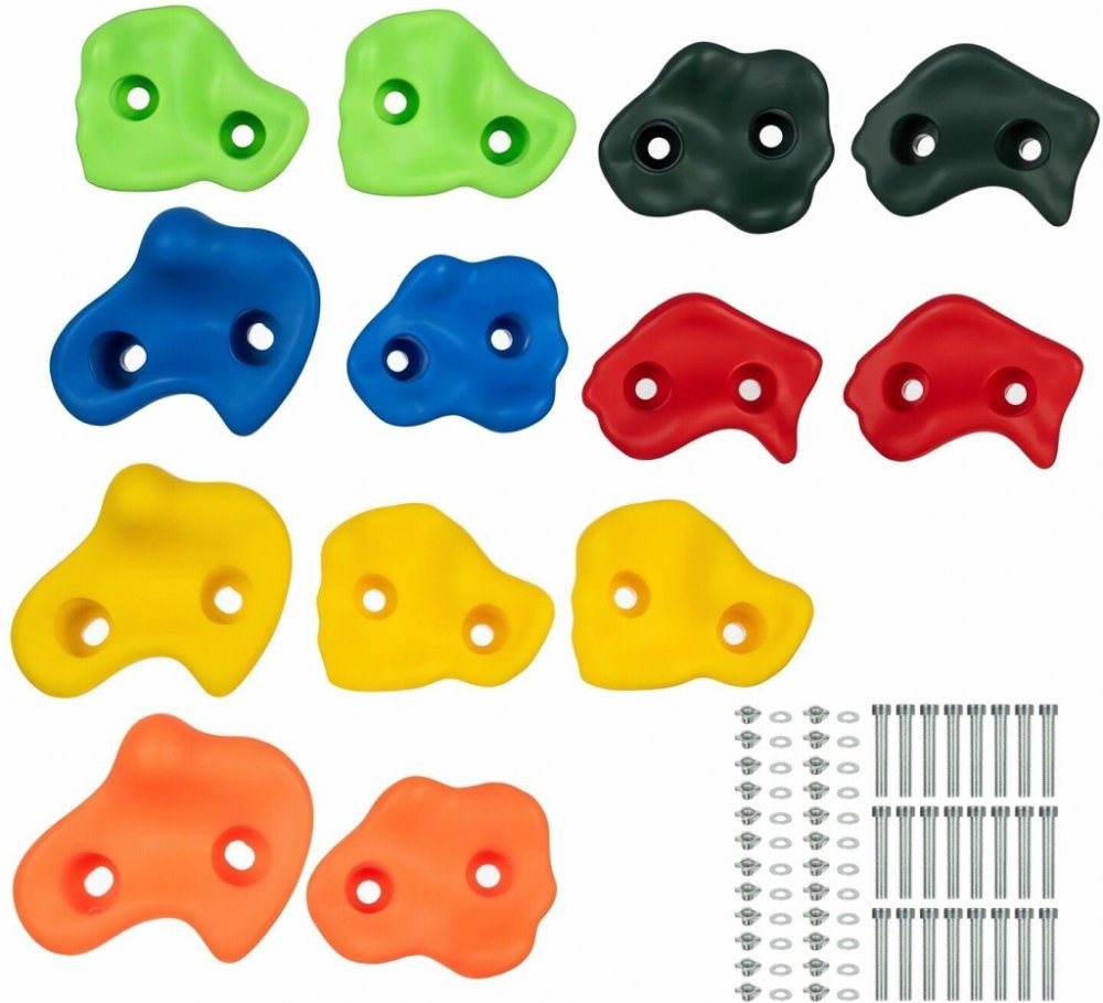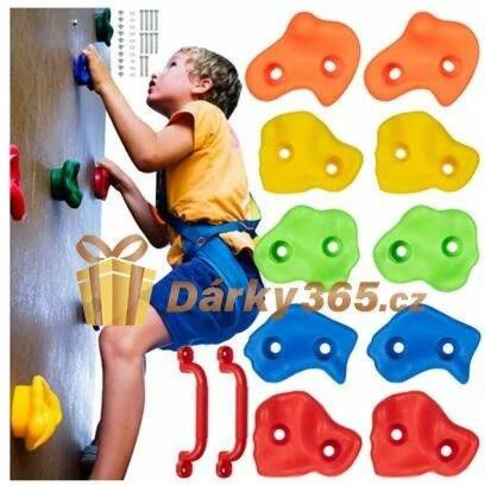 Lezecké úchyty ve tvaru barevných kamenů poskytnou nejen spoustu zábavy, ale také povzbudí ke cvičení. Sada obsahuje vše potřebné k montáži držáků na zeď. Dráhu si tedy můžete poskládat podle sebe. Povrch rukojetí je bez ostrých hran a je drsný, což zlepšuje úchop i s mokrýma nebo špinavýma rukama. Lezení pomocí úchytů rozvíjí svaly celého těla, pomáhá udržovat rovnováhu a procvičuje koordinaci ru...