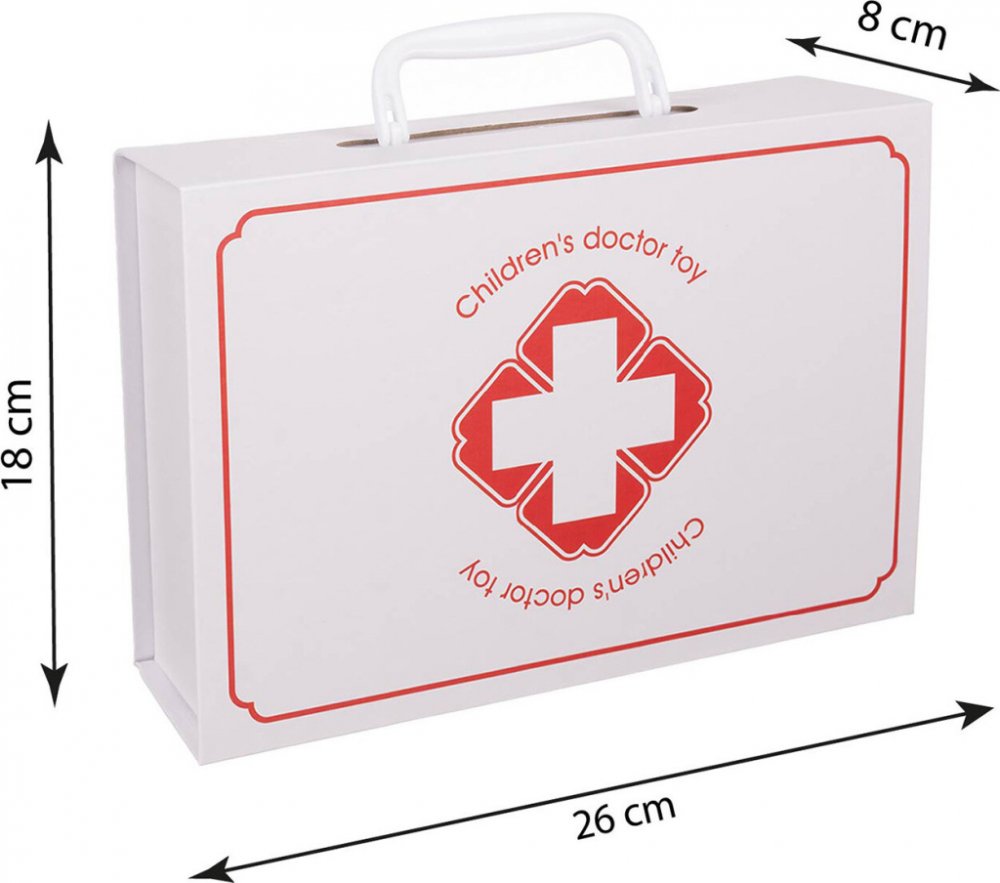 Zábavná lékařská sada v kufříku, která pomůže dětem hravou formou překonat strach z doktorů. Obsahuje bohaté příslušenství pro hru na lékaře i zubaře, včetně dřevěných nástrojů, stetoskopu, rentgenu a modelu zubů. Vše je sbaleno v praktickém kufříku pro snadné přenášení.