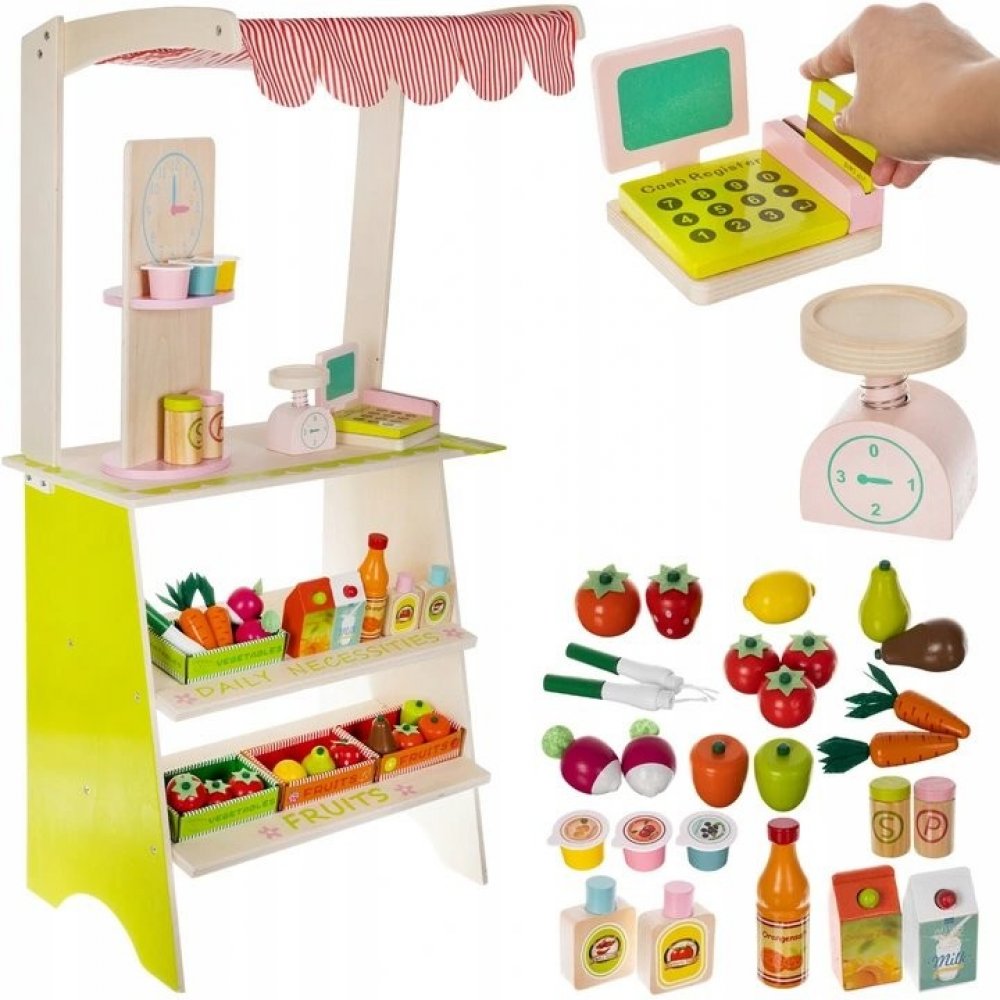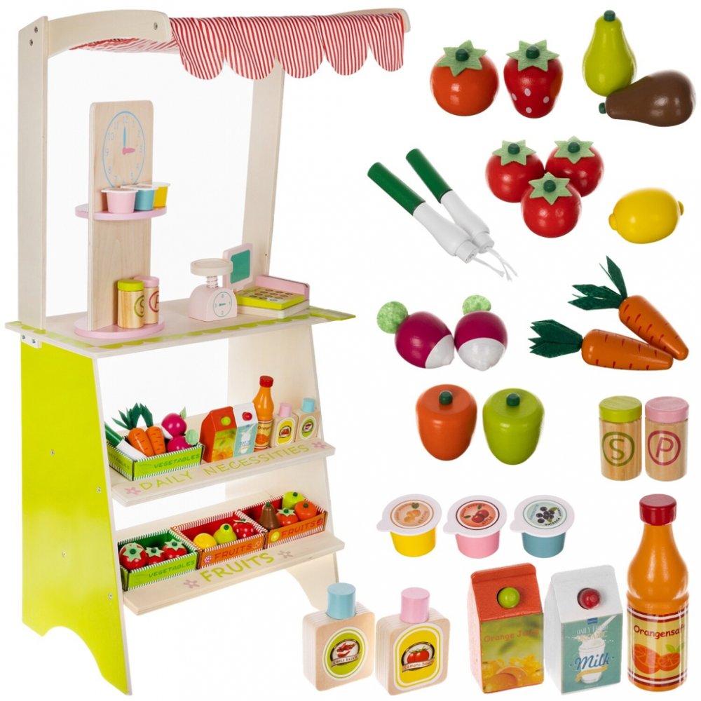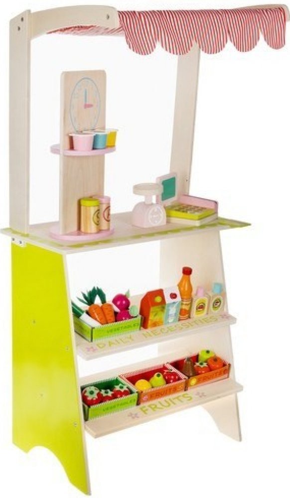 Krásně zpracovaný útulný obchůdek s potravinami je výborným dárkem pro každou malou prodavačku i prodavače. Dřevěný obchod s příslušenstvím zajistí vašim dětem plnohodnotné hraní.