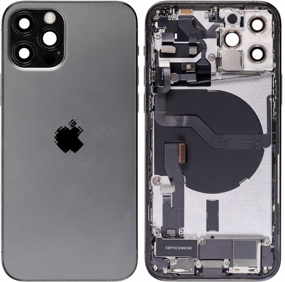 Zadní housing pro Apple iPhone 12 Pro Pokud vaše zařízení padlo na zem a poškodil se vám tak zadní housing na Apple iPhone 12 Pro , toto je díl, který potřebujete, aby bylo vaše zařízení opět bez poškození. Zadní housing s malými díly pro Apple iPhone 12 Pro obsahuje: Flex Kabel Tlačítka Zapínání a Hlasitosti s Krytkou a Šrouby Nabíjecí Konektor + Flex Kabel Reproduktor Vibrátor Antény (Wifi, Blue...