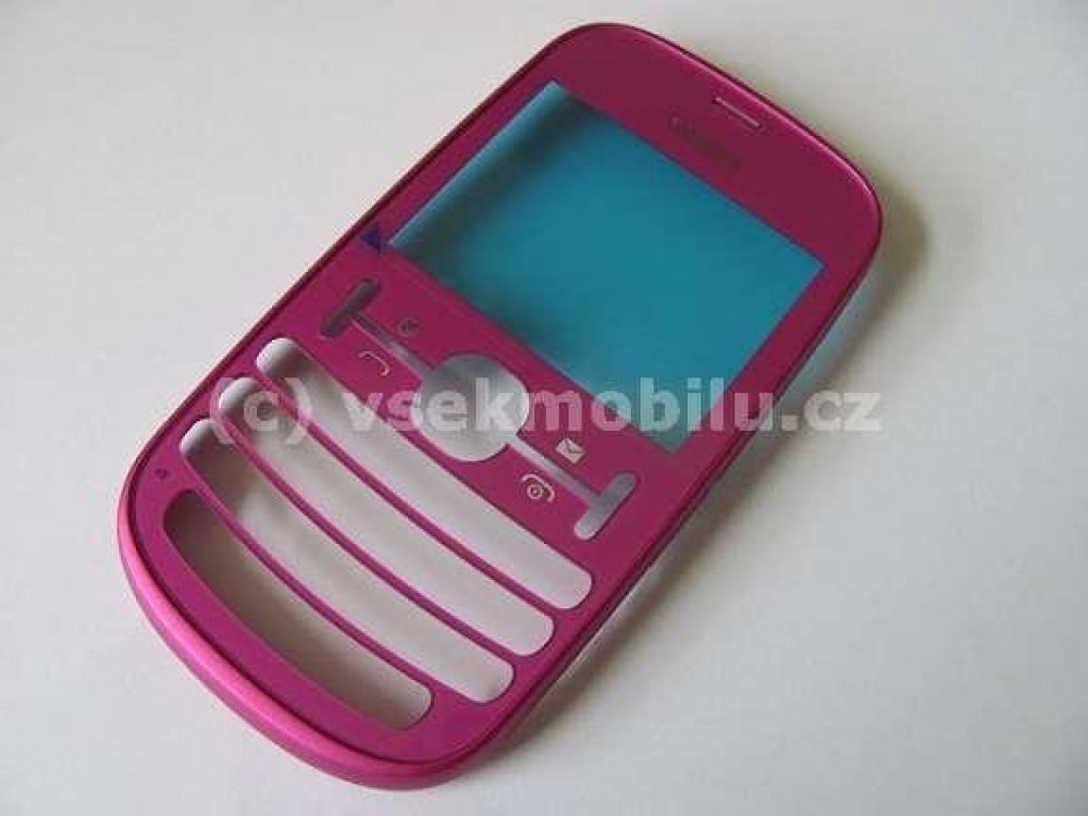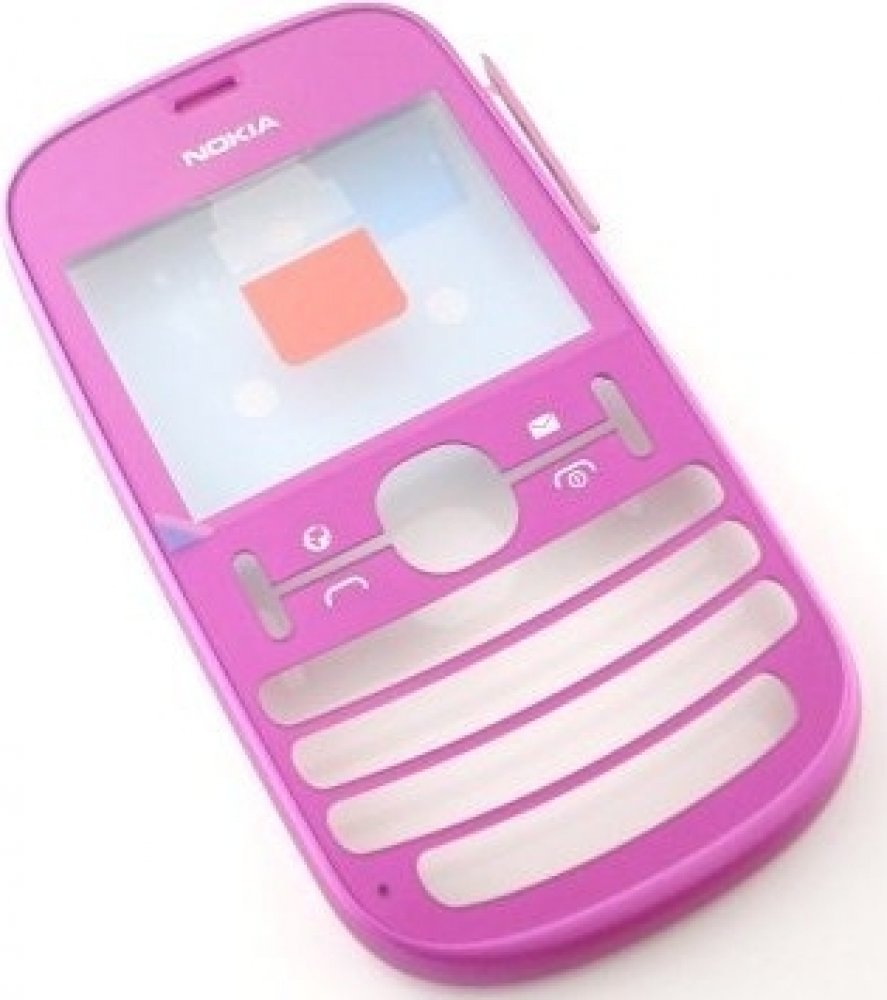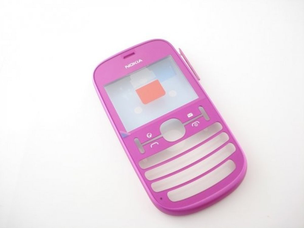 Originální přední kryt Nokia Asha 201 růžový včetně sklíčka a bočních tlačítek: microUSB