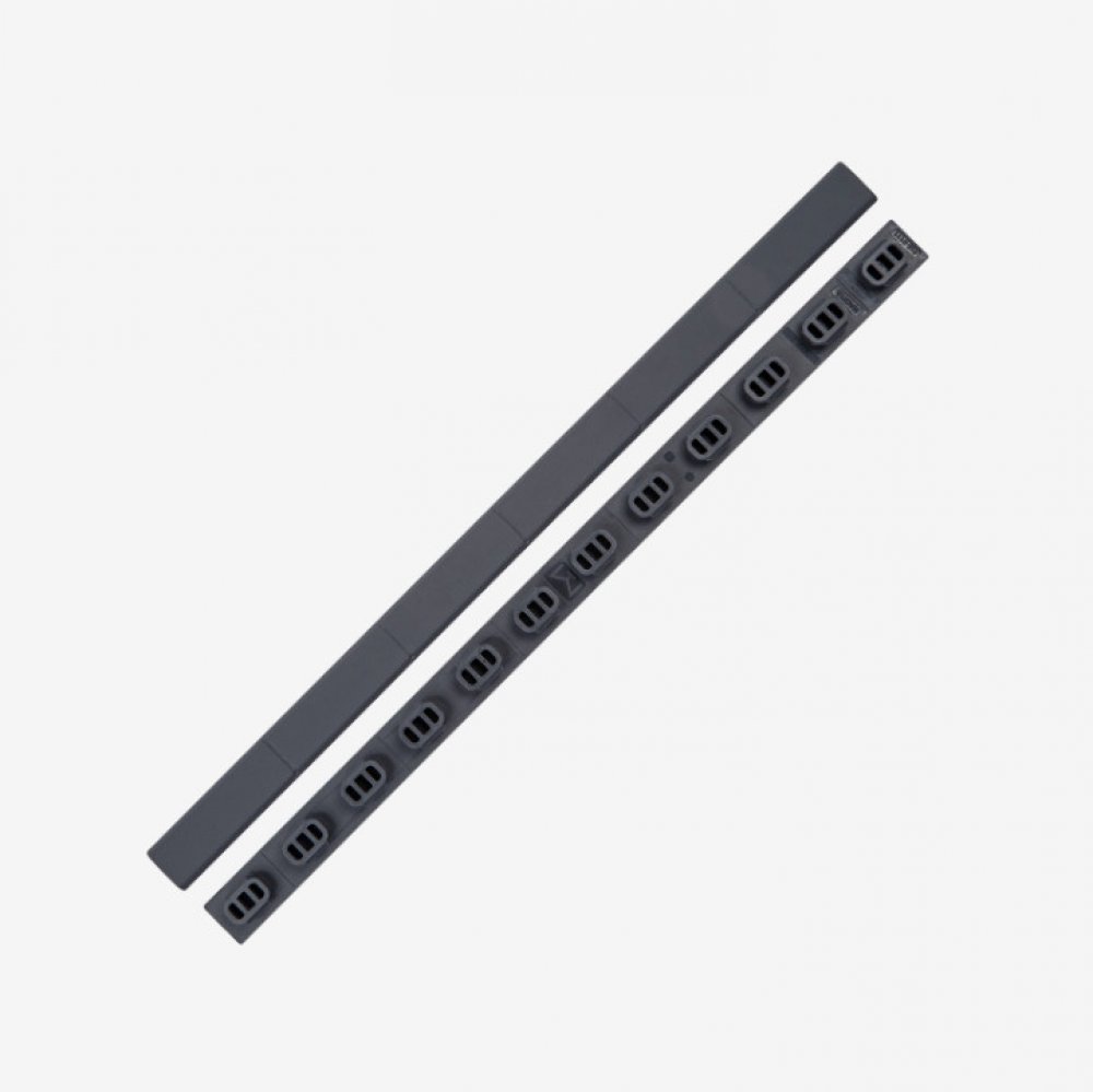 Na délku 9,5 palce pokrývají šest plných slotů M-LOK, lze je však zkrátit pro přizpůsobení délky nebo pro kombinaci barev.