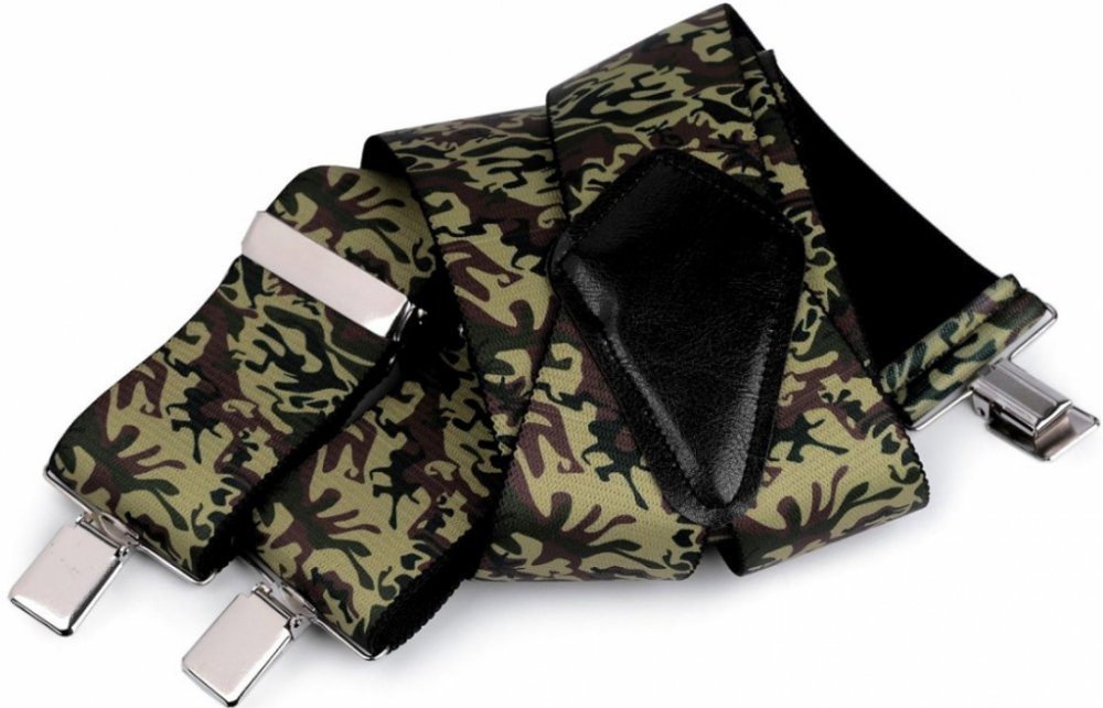 Kšandy s maskáčovým potiskem potěší muže, kteří chtějí dobře vypadat ve městě i v přírodě. Kšandy bývají nedílnou a zároveň praktickou součástí jejich oblečení.
