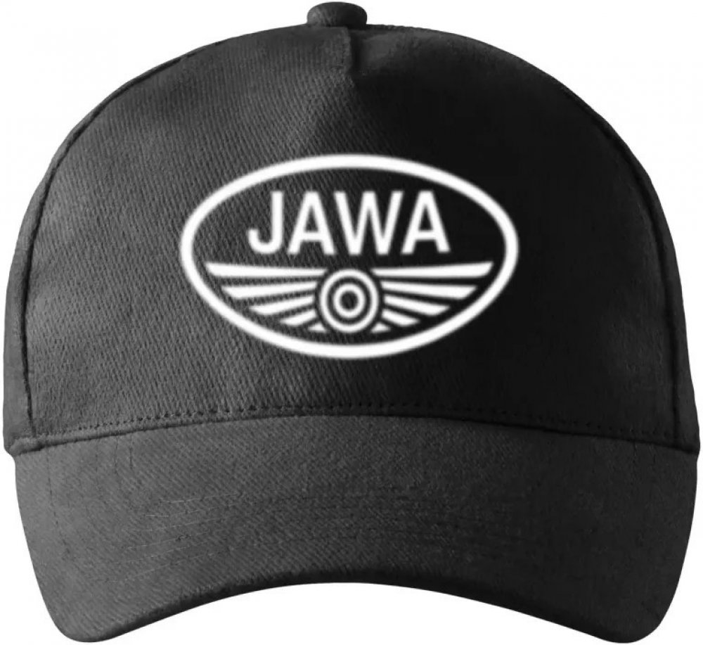 Čepice Jawa, kšiltovka s potiskem JAWA pro fanoušky této značky. Potisk JAWA vpředu vyroben speciálním vyšším potiskem imitující výšivku. Pětipanelová bavlněná čepice unisex z broušeného kepru s nastavitelným mosazným klipem a větracími otvory.