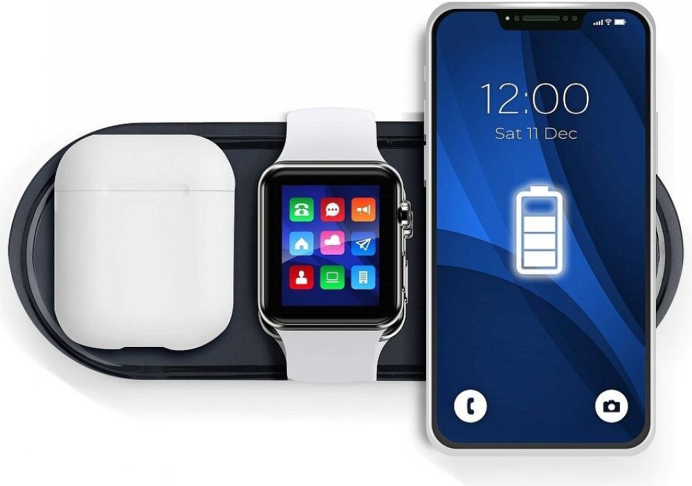 Moderní bezdrátová nabíječka, která umožňuje současné nabíjení tří typů zařízení: sluchátka TWS, chytré hodinky a smartphony, které podporují funkci indukčního nabíjení. Nabijte více zařízení pomocí jednoho příslušenství! Nabíječka KT-IW umožňuje indukční nabíjení několika typů zařízení: mobilní telefony, sluchátka TWS a chytré hodinky. Výrobek je vyroben z ABS a PC, díky čemuž je odolný vůči pošk...
