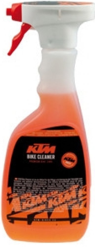 KTM Bike Cleaner je prostředek určen pro údržbu a čištění jízdních kol od bláta a jiných nečistot. Bike Cleaner se nastříká na kontaminované místa např. přehazovačky, pedály, náboje, rám). Je vhodný zejména k čištění velmi znečištěných částí (řetězy, ozubená kola apod.), kam se dostane díky své pěnivosti a tak je spotřeba produktu n