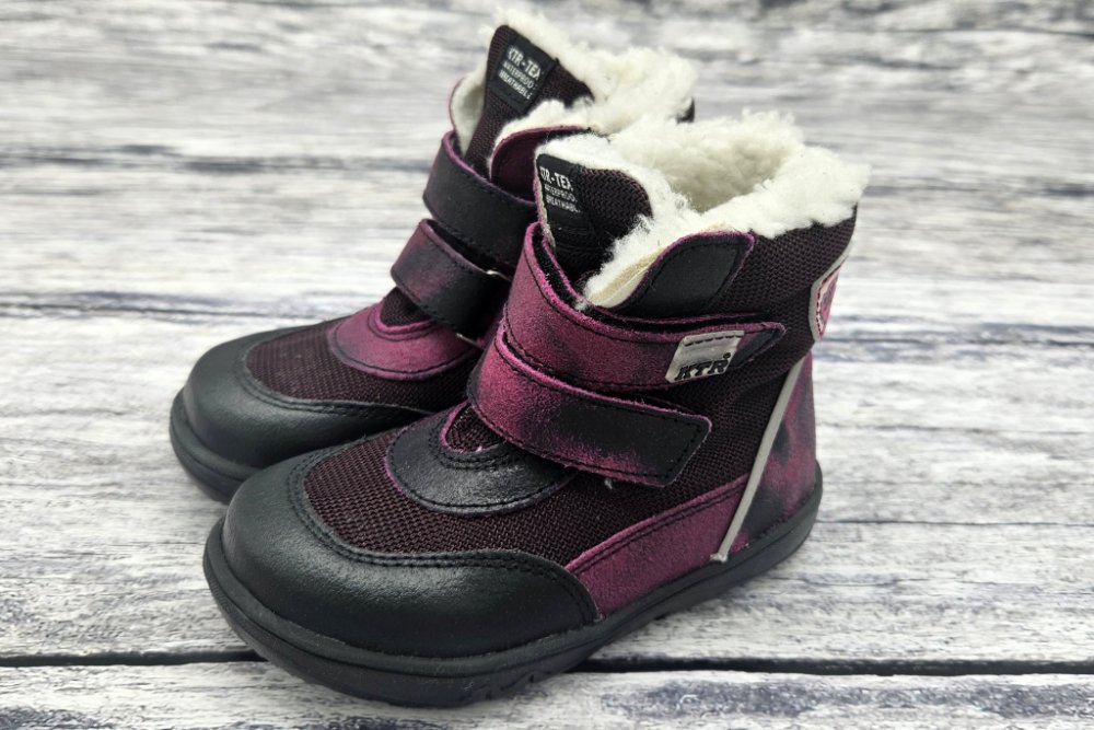 Svršek bot je vyroben z kombinace textilu a kůže, uvnitř hřejivý kožíšek, podrážka je vyrobena z flexibilní gumy. Botky mají vhodný tvar pro dominantní palec, dobré dotažení kolem kotníků díky dvěma suchým zipům.