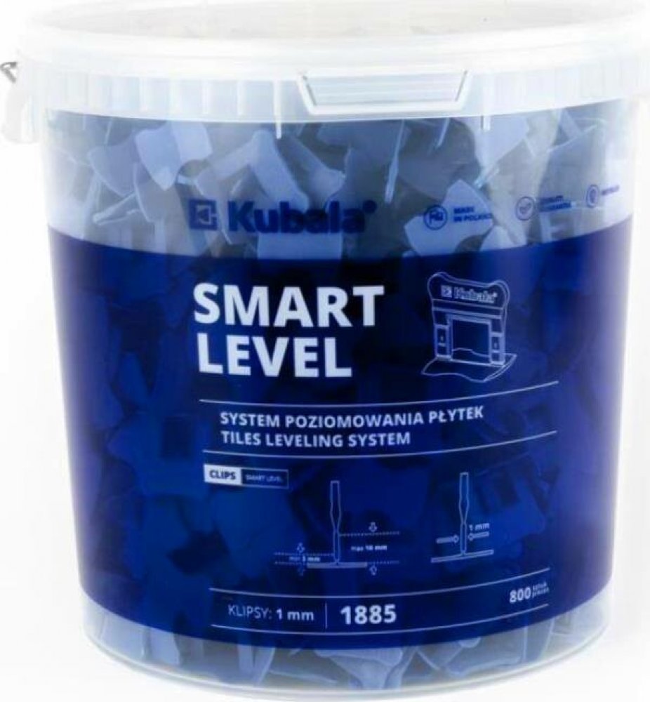 náhradní spony pro SMART LEVEL - vyrovnávací systém pro obklady a dlažby průhledný kbelík s víkem a stupnicí plněný klipy SMART LEVEL pohodlné rukojeti po stranách kbelíku šířka spáry je dána tloušťkou …