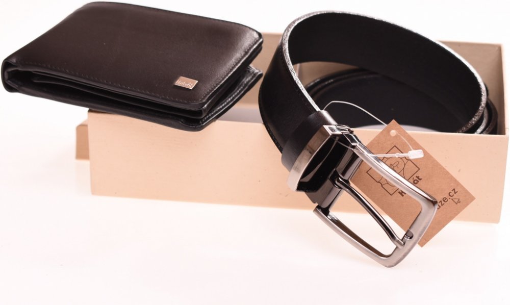 Kubát Dárková sada kožené peněženky a opasku pro muže černá S742312PL