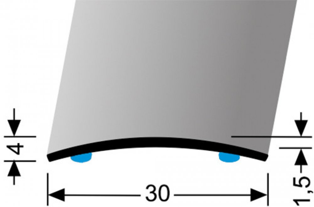 Přechodový profil oblý o šířce 30 mm samolepící. Je vhodný zejména pro přechod podlah o stejné výšce, ale dokáže překonat i rozdíl výšek do 3 mm. Lišta spojuje jak podlahy stejného druhu, nebo i kombinaci podlahových krytin z různých materiálů (PVC, laminátová podlaha, korková podlaha, koberec, dlažba, dřevěná podlaha aj.)