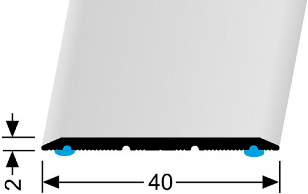 Přechodový profil samolepící o šířce 40 mm. Je vhodný pro přechod podlah o stejné výšce. Lišta spojuje jak podlahy stejného druhu, nebo i kombinaci podlahových krytin z různých materiálů (PVC, laminátová podlaha, korková podlaha, koberec, dlažba, dřevěná podlaha aj.)