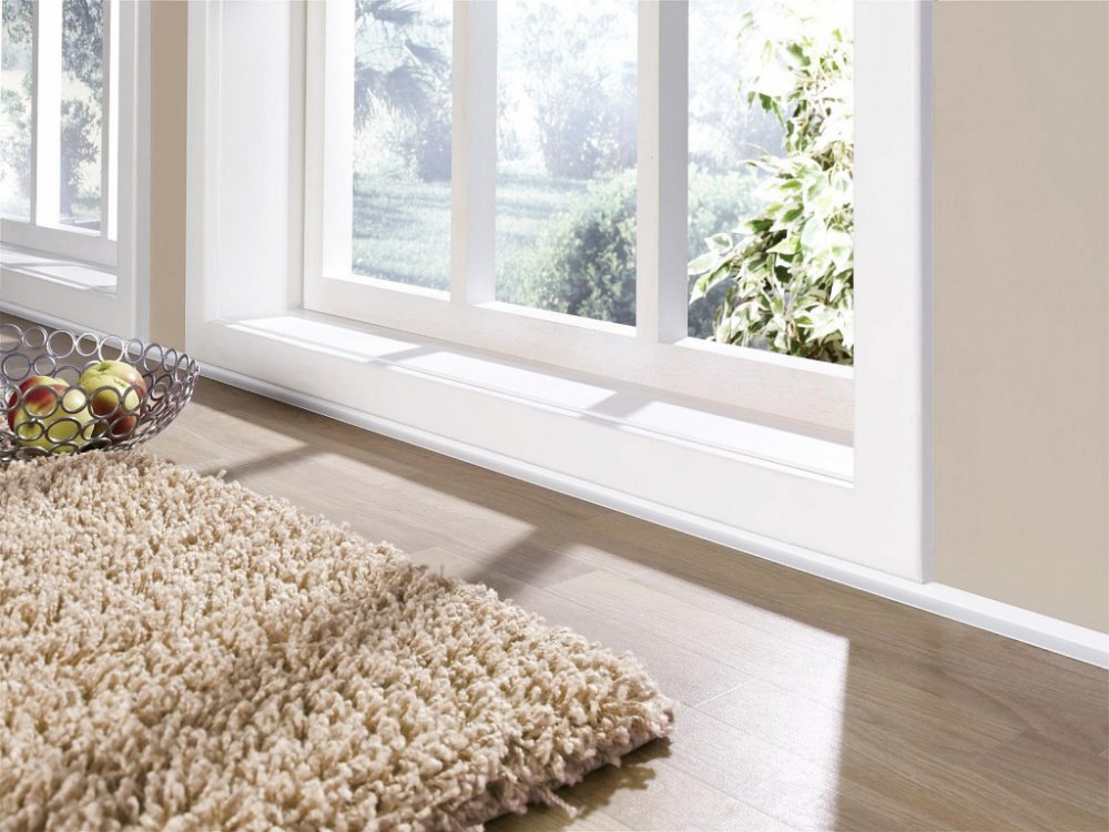 Profil je určen pro dilatační ukončení (překrytí spáry) podlahy u stěny. Má lepidlo na obou stěnách. Možnost přilepení delší i kratší stranou. Je vhodný zejména pro balkonové dveře. Profil je nalepen na stěně nebo na rámu dveří a podlaha pod ním může volně dilatovat.
