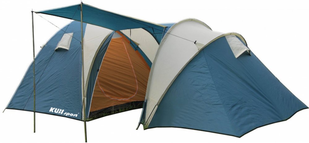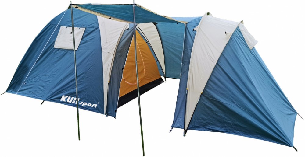 Struktura: dvě ložnice a velká předsíňka s vrchním pláštěm přetaženým přes laminátové nosné pruty nabízejí komfortní ubytování pro až 5 osob. Sluneční střecha poskytuje další ochranu a prostor pro relaxaci venku