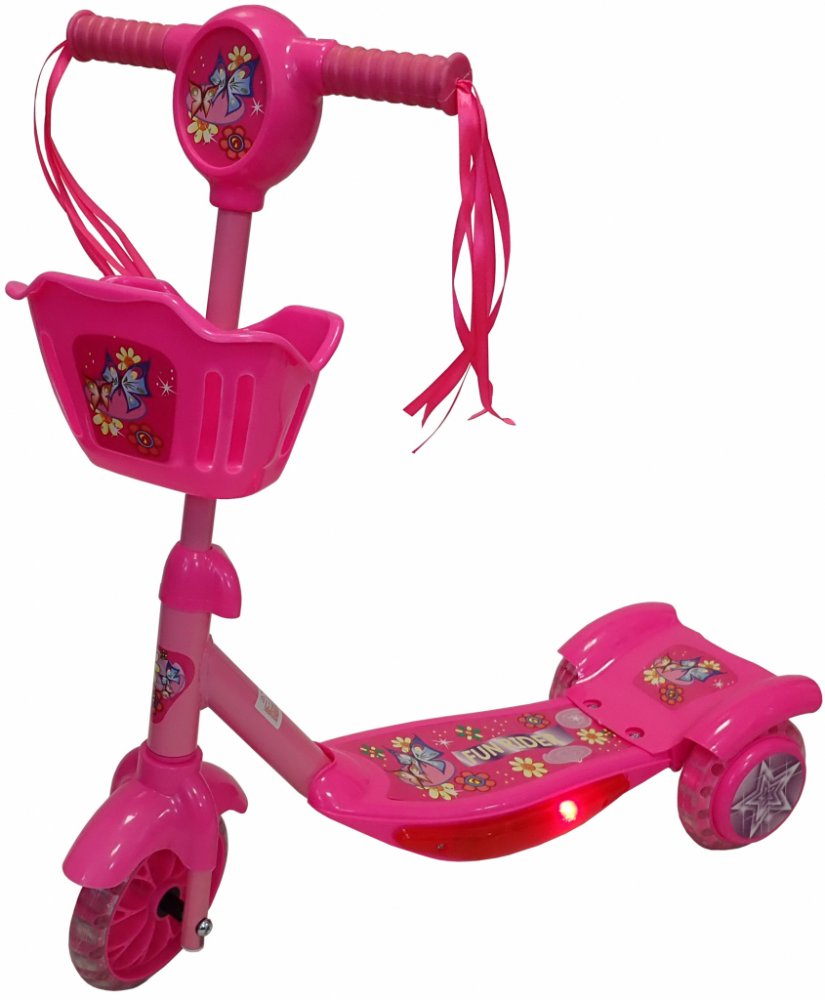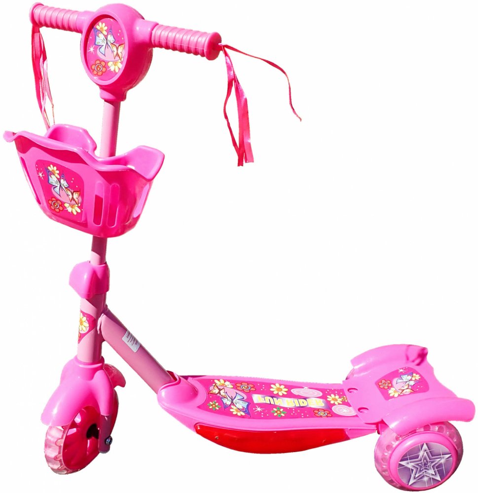 Koloběžka dětská je určena pro děti od 2 - 3 let. Materiál je ocel + plast. Kolečka jsou plastová, o průměru - přední 15 cm a zadní 11 cm. Rozměry výrobku - 54 x 21 x 58 cm, délka stupátka ( plocha pro nášlap nohy ) je 24 cm. Hmotnost koloběžky - 2,1 kg. Nosnost výrobku 30 kg. K dispozici v barvě růžové.