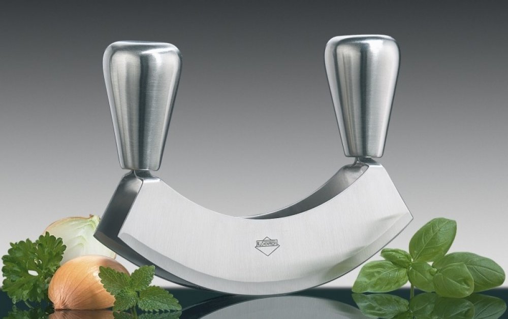Dvojitá kolébka z nerezu.Možnost mýtí v myčce nádobí, ale z důvodu tupení ostří je doporučeno ruční mytí.