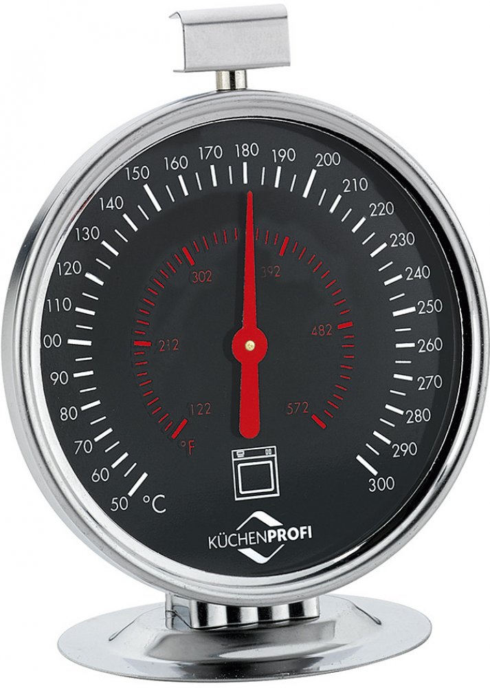 S teploměrem do trouby od KÜCHENPROFI snadno zajistíte a zkontrolujete, zda vaše trouba peče jak má. Stupnice od 50 °C do 300 °C jasně ukazuje, zda mají vaše koláče, dorty a pizza požadovanou teplotu. Nervy šetřící kuchyňskou pomůcku z nerezové oceli můžete buď zavěsit nebo postavit.