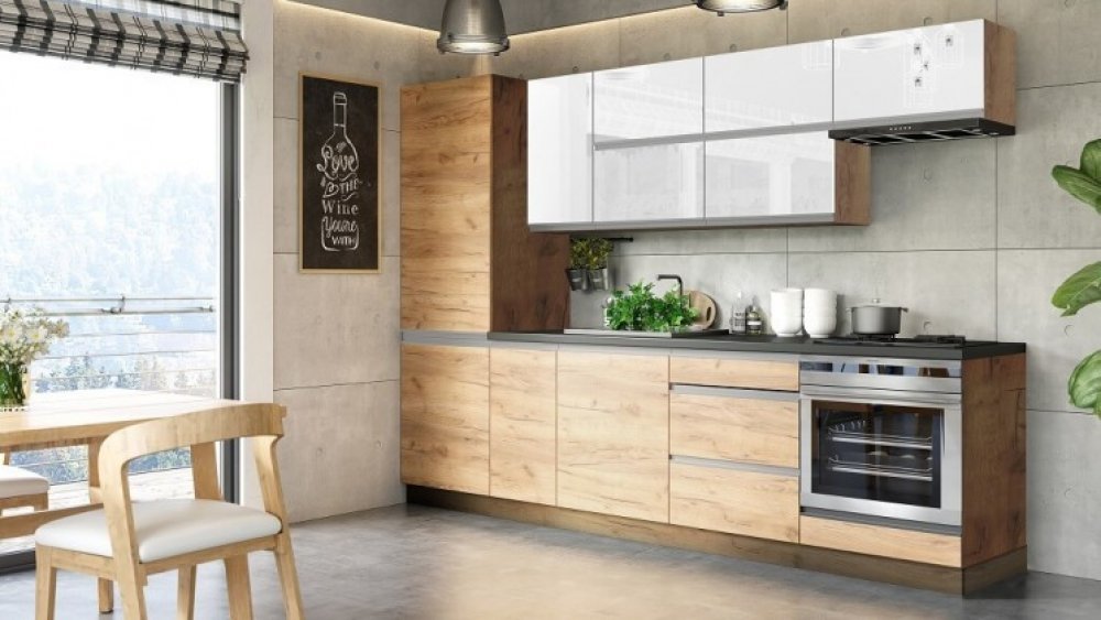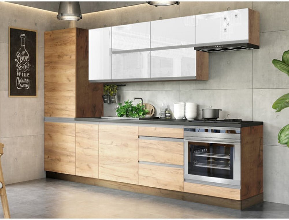Seznamte se s výhodami kuchyně Brick light v naší video recenzi Video recenze má ilustrativní charakter. Vystihuje nejvýznamnější vlastnosti a funkce kuchyně Brick light. Kuchyně Brick light vás potěší ve všech směrech Bloková kuchyně Brick light spojuje elegantní design s množstvím praktických funkcí a využití. Je provedena v délce 280 cm a tvoří ji 4 horní, 4 dolní skříňky a vysoká potravinová skříň. Společně tyto části vytvářejí objemný úložný prostor, který bohatě vystačí pro uskladnění všech potřebných věcí. Jednotlivé skříňky kuchyně jsou variabilní a můžete je tak poskládat stejně jako na vyobrazených fotografiích nebo jakkoliv jinak budete potřebovat. Celá kuchyně je postavena na výškově regulovatelných nožkách, kterými snadno vyrovnáte případné nerovnosti a poté je ukryjete za spodní krycí lištu (sokl). Kvalitní pojezdy METABOX Zásuvky disponují kvalitními kovovými pojezdy METABOX. Funkce plynulého otevírání a tlumeného zavírání Dvířka vrchních skříněk jsou opatřena plynovými písty, které zajistí bezpečné a plynulé otevírání, což je velice užitečné z pohledu pohodlnosti manipulace a také z pohledu praktického, kdy dvířka po otevření setrvávají ve vodorovné poloze. Na proti tomu dolní skříňky disponují systémem tlumeného zavírání, který zamezí nechtěnému bouchání dvířek a významně tak snižuje opotřebovanost nábytku. Rozměry kuchyně Brick light VIDEO RECENZE KE KOMPLETNÍMU ŘEŠENÍ PRO VAŠI KUCHYNI Video recenze ke kuchyni Brick je ilustračního charakteru. Zobrazuje vybrané kompletní řešení kuchyně včetně elektrospotřebičů. KOMPLETNÍ ŘEŠENÍ PRO VAŠI KUCHYNI Víme, jak ušetřit váš čas. Proto u nás najdete kuchyni Brick spolu s elektrospotřebiči tak, aby byl její nákup ještě snazší. kompletní řešení pro vaši kuchyni Výhody: moderní kuchyňská linka elegantní kombinace dekorů zafrézované zapuštěné úchytky systém tlumeného zavírání dostatek úložného a pracovního prostoru variabilní uspořádání skříněk výškově regulovatelné nožky kvalitní a odolné materiály Složení sestavy: 4x horní skříňka 4x dolní skříňka vysoká potravinová skříň pracovní deska spodní krycí lišta (sokl) Součástí kuchyně není úzká svislá krycí lišta zakrývající mezeru mezi kuchyní a stěnou (boční čela spodních skříněk nedoléhají ke zdi). Provedení: materiál: laminovaná dřevotříska (LDTD) dekor korpusu: dub craft tloušťka korpusu: 16 mm dekor horních skříněk: bílá lesk dekor dolních skříněk: dub craft povrchová úprava: lesk/mat pracovní deska: 220x60 cm, tloušťka: 38 mm dekor pracovní desky: černá zásuvky: kovové pojezdy METABOX skříňky: plynové písty, funkce tlumeného zavírání úchytky: stříbrné, zapuštěné, frézované ABS úprava hran rozměry: 280x214x60 cm Rozměry jednotlivých částí: horní skříňka G40 (úzká): 40x72x32 cm 2x horní skříňka G60u (výklopná): 60x72x32 cm horní skříňka G60ok (digestořová): 60x36x32 cm dolní skříňka D40 (úzká): 40x82x56 cm dolní skříňka D60zl (dřezová): 60x82x56 cm dolní skříňka D603sz (3x zásuvka): 60x82x56 cm dolní skříňka D60ku (na vest. troubu): 60x82x56 cm vysoká potravinová skříň: 60x214x56 cm Dodání: demontováno