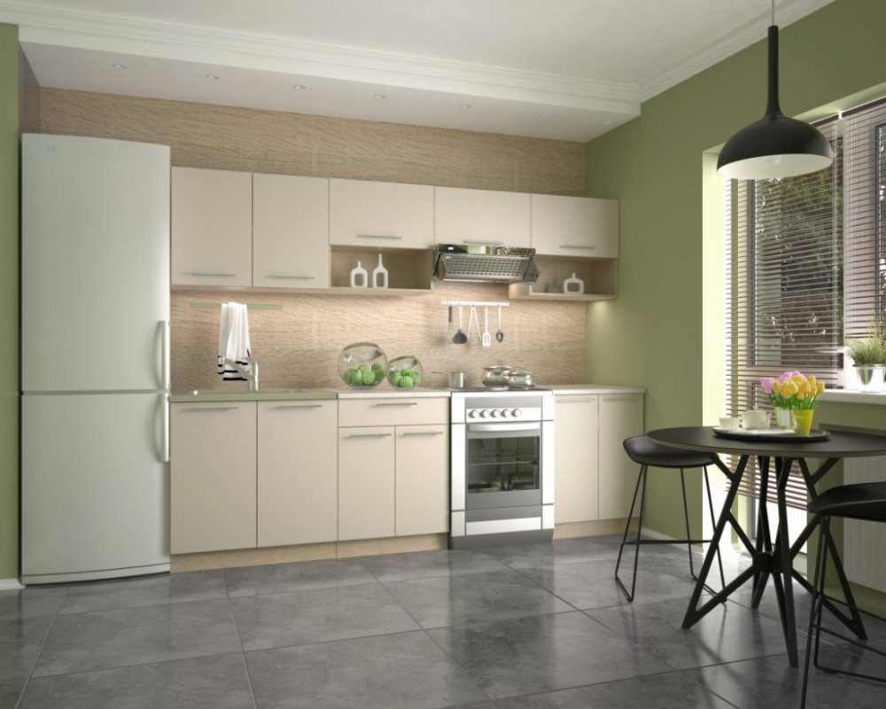 Moderní kuchyňská linka ve dvoubarevné kombinaci.