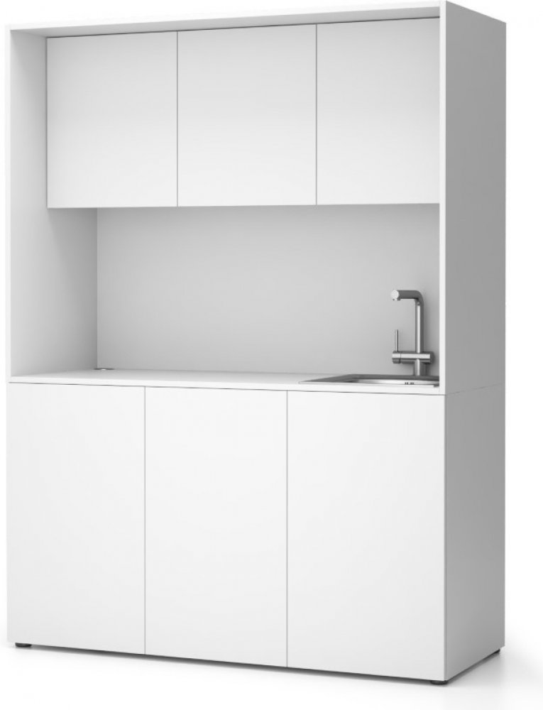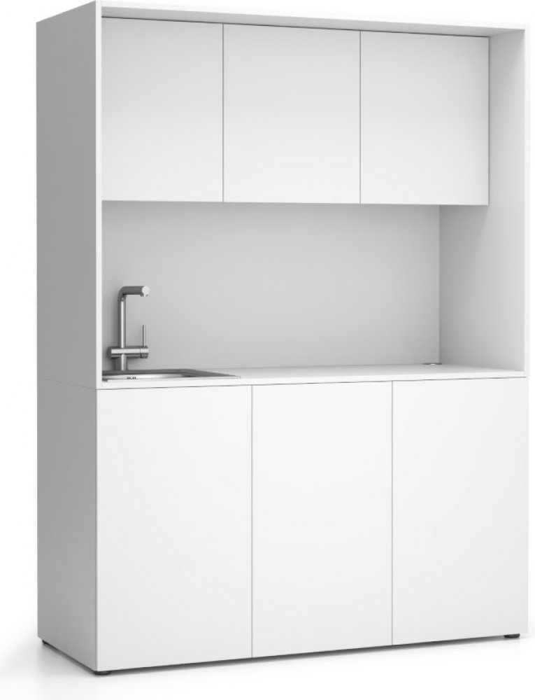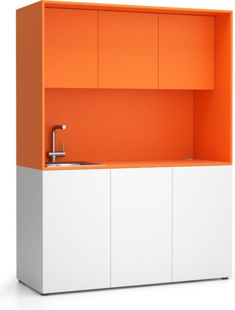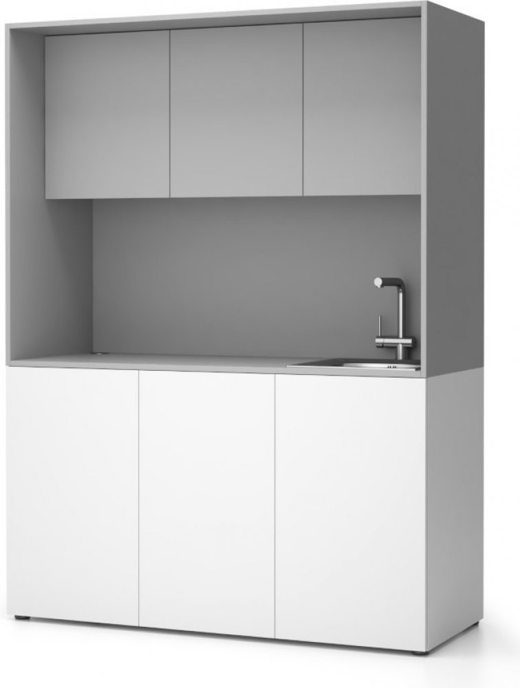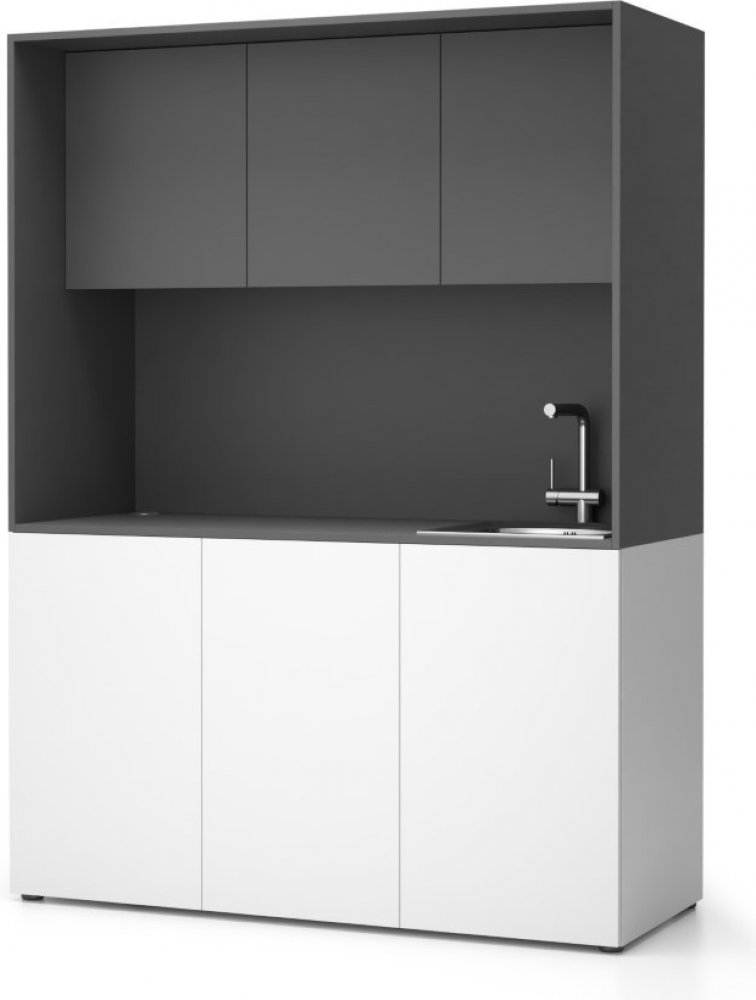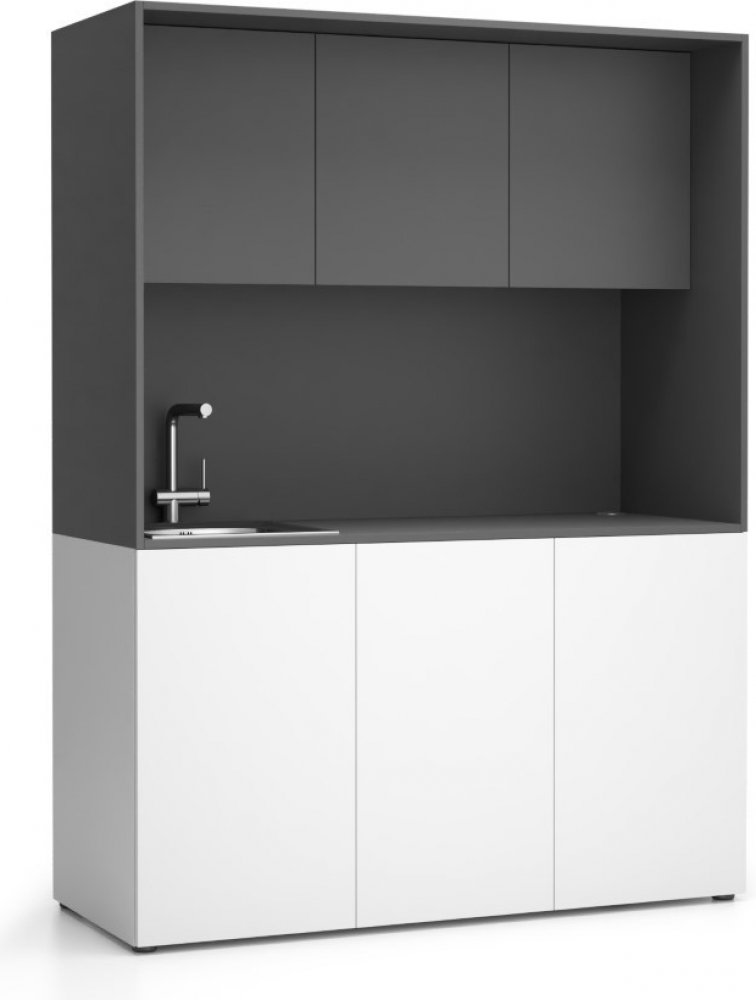 · kuchyňky NIKA s elegantním designem jsou vhodné do každé moderní kanceláře · výběr z několika různých barevných provedení, aby vám co nejvíce ladily do dekoru místnosti · spodní dvířka jsou vybavena bezúchytkovým PUSH systémem otevírání · vyrobeny z laminované dřevotřísky o síle 18 mm, opatřeny ABS hranou · pracovní deska ve všech nabízených dekorech, tl. 18 mm · pracovní deska je vybavena kabelovou průchodkou, která umožňuje zapojení elektrospotřebičů do prodlužovací zásuvky, kterou lze elegantně schovat do spodní skříňky · nerezový dřez, 435 x 455 mm včetně montážního setu a příslušenství · páková baterie včetně montážního setu a příslušenství · rektifikační kluzáky pro vyrovnání podlahy do výšky 15 mm · kuchyňku lze doplnit LED svítící lištou, nutno objednat zvlášť