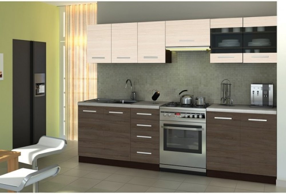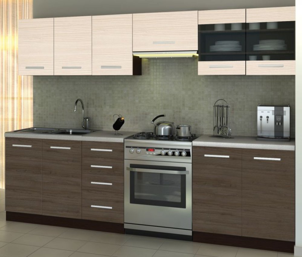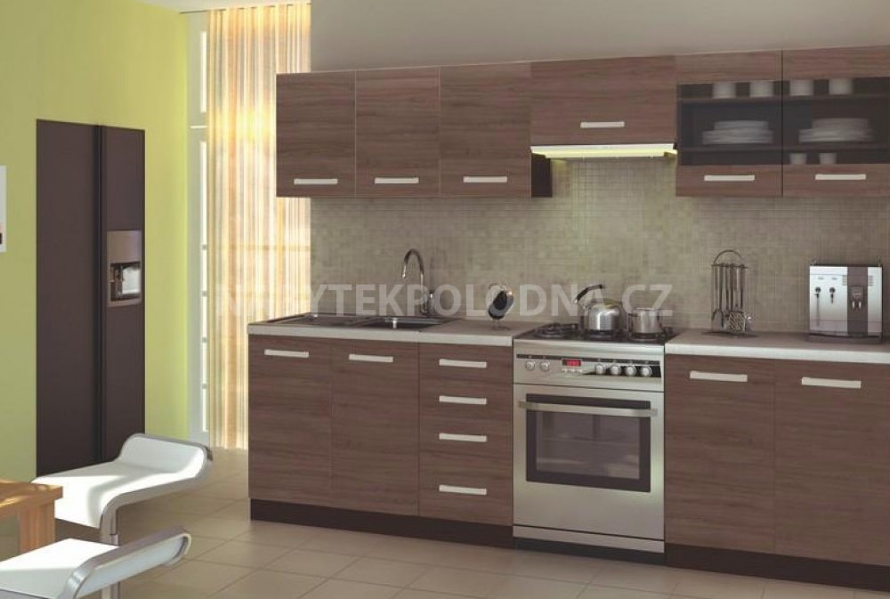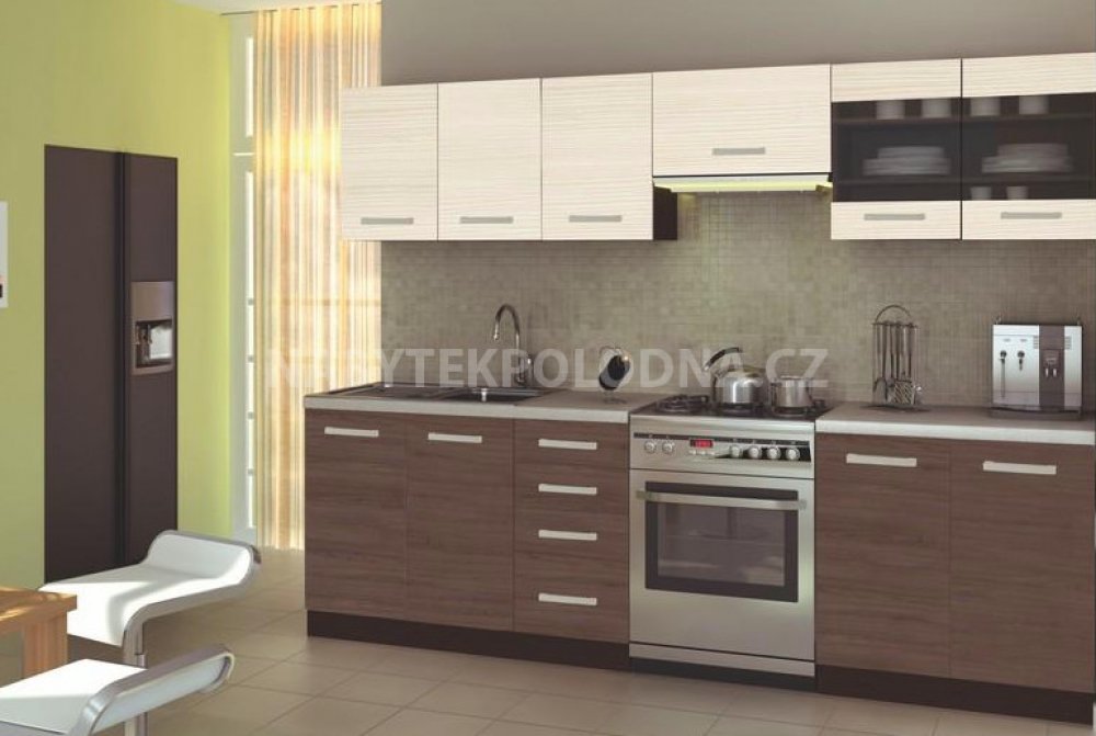 Klasika nikdy nezestárne. Jednoduché tvary a kombinace barev světlé a tmavé, rozjasní vaši kuchyni. Hnědobéžová kuchyňská linka AMANDA 2 260 Krásná barevná kombinace wenge a priede arden dokonale doplní vaši kuchyni. A to nemluvě o úložném prostoru, který tato linka může nabídnout. Dokonce budete mít kam umístit i váš oblíbený kávovar či stojan s nožemi. Máte krásné talíře? Výborné, nechte je nepa...
