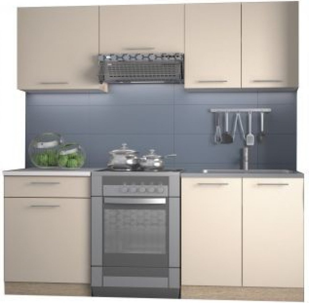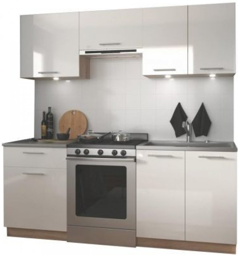 Kuchyně je dodávána v demontu. Součástí produktu jsou pouze skřínky a pracovní deska. Dřez, digestoř, trouba a další vyobrazené věci v ceně. Doporučujeme kvalitní dřez, který můžete přikoupit zde.