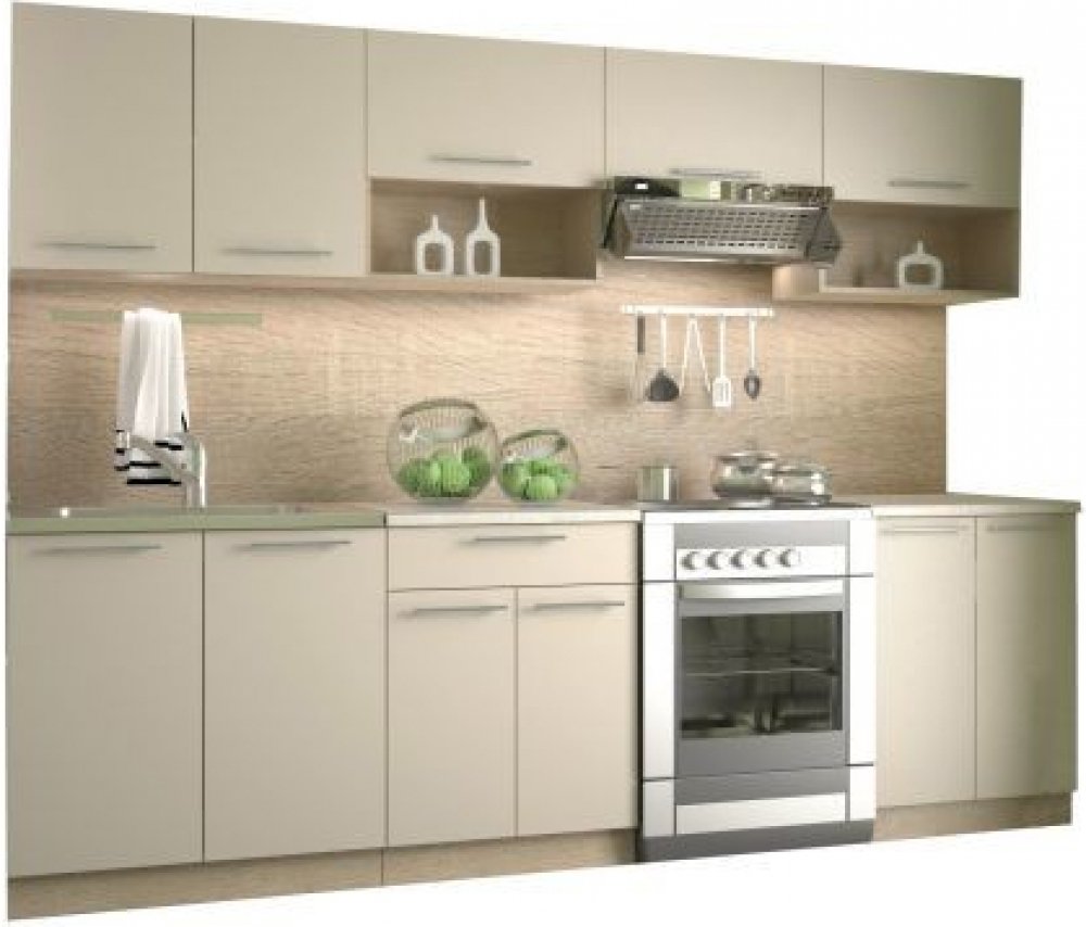 Kuchyňská linka Viola vytváří praktické pracovní prostředí, které je doplněno světlým designem. Je navržena v moderní kombinaci světlých barev a dezénu dubu sonoma. Kompletní sestava kuchyňské linky Viola je dlouhá 260 cm a ve svých skříních nabízí mnoho úložného místa pro nejrůznější kuchyňské pomocníky. Horní závěsné skříňky jsou vybaveny plynovými písty a jejich otevírání je tak velmi pohodlné....