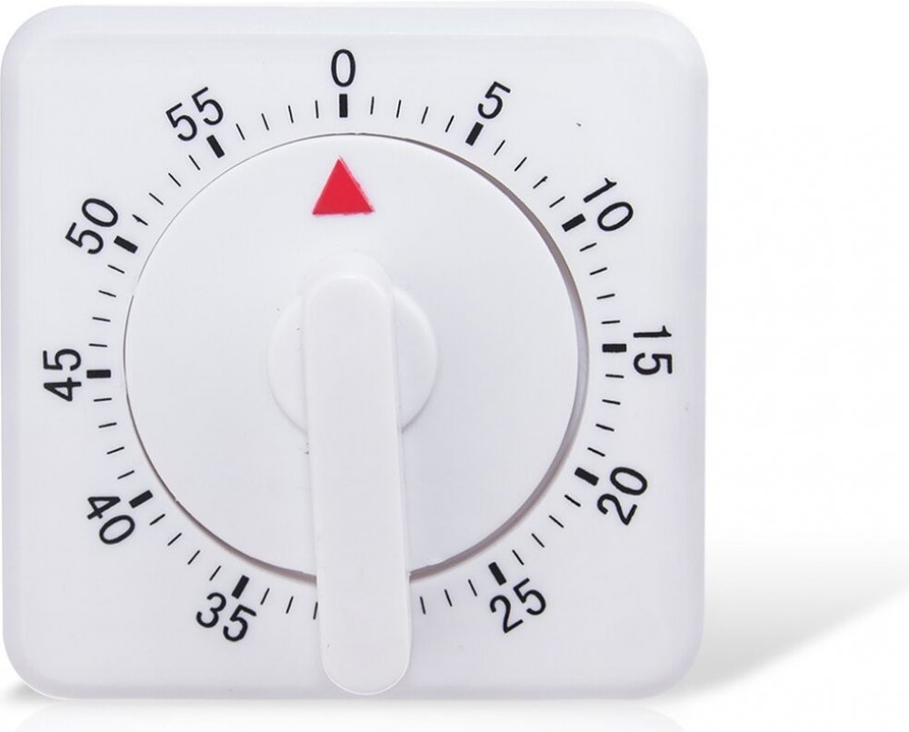 Díky svému hranatému tvaru, elegantní bílé barvě a kvalitnímu materiálu zapadne do interiéru každé kuchyně. Červená šipka upozorní na aktuální nastavený čas. Maximální nastavitelná doba je 60 minut.