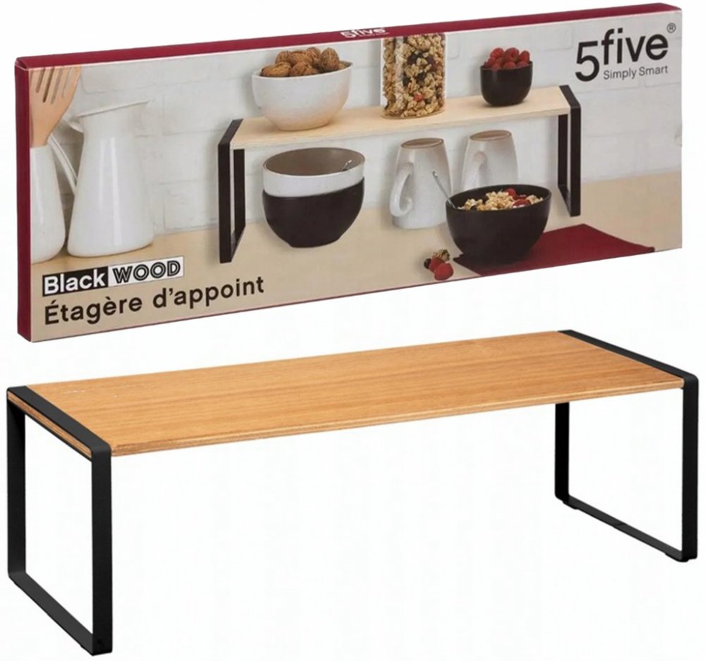 Kuchyňská police, 50 x 18 x 15 cm od francouzské značky 5five Simply Smart je řešení, které bude použito v každé kuchyni. Vytvoří další úložný prostor a usnadní jeho použití. Díky tomu získáme pořádek a veškeré potřebné příslušenství bude vždy na dosah. Kromě toho bude estetický design vynikajícím doplňkem interiéru kuchyně.Prezentovaná kuchyňská police má dřevěnou špičku a stabilní kovové nohy. K...