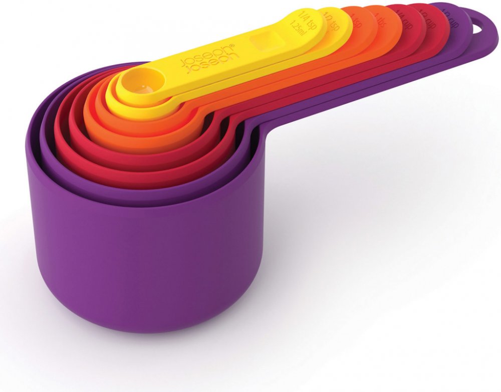 Pořádek v kuchyni a každý kousek volného prostoru je k nezaplacení. Inovativní přístup designerů vložit nádoby do sebe připomíná bezstarostné hry z dětství, nemá vysoké nároky na skladování a zároveň usnadní práci v kuchyni. Stačí vyndat "jednu" odměrku na pracovní desku a pohodlně používat vše co obsahuje – bez dalšího hledání.