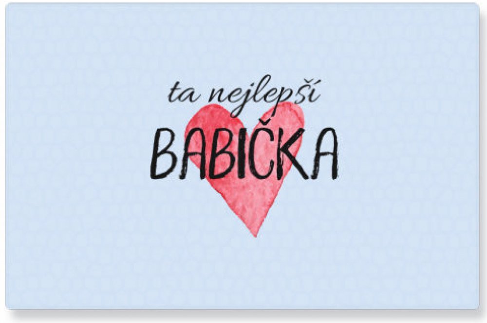 Tento obrázek je ideální pro každého, kdo chce oslavit tu nejlepší babičku na světě! S nápisem "Ta nejlepší babička" na srdíčkovém pozadí vám zajistí efekt "wow" při každé návštěvě vašeho domova. Představte si, jak skvěle by vypadal na hrnečku, tričku nebo polštáři! Perfektní dárek pro babičku, kterou chcete potěšit a ukázat jí, jak moc ji máte rádi. Tento design je zárukou úsměvu, nostalgie a spousty teplých objetí. Tiskněte na cokoliv a kdekoliv, babička si to zaslouží!. Kvalitní skleněné prkénko. Rozměry 33x23 cm. Motiv je tištěn zezpodu, tzn. nepoškrábe se.