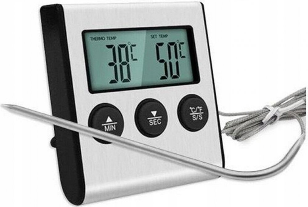Kuchyňský teploměr elektronický LCD digitální na pečení se sondou a časovačem