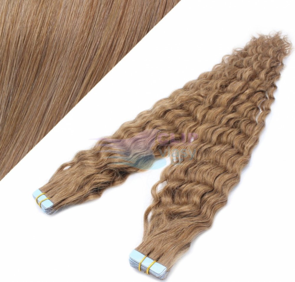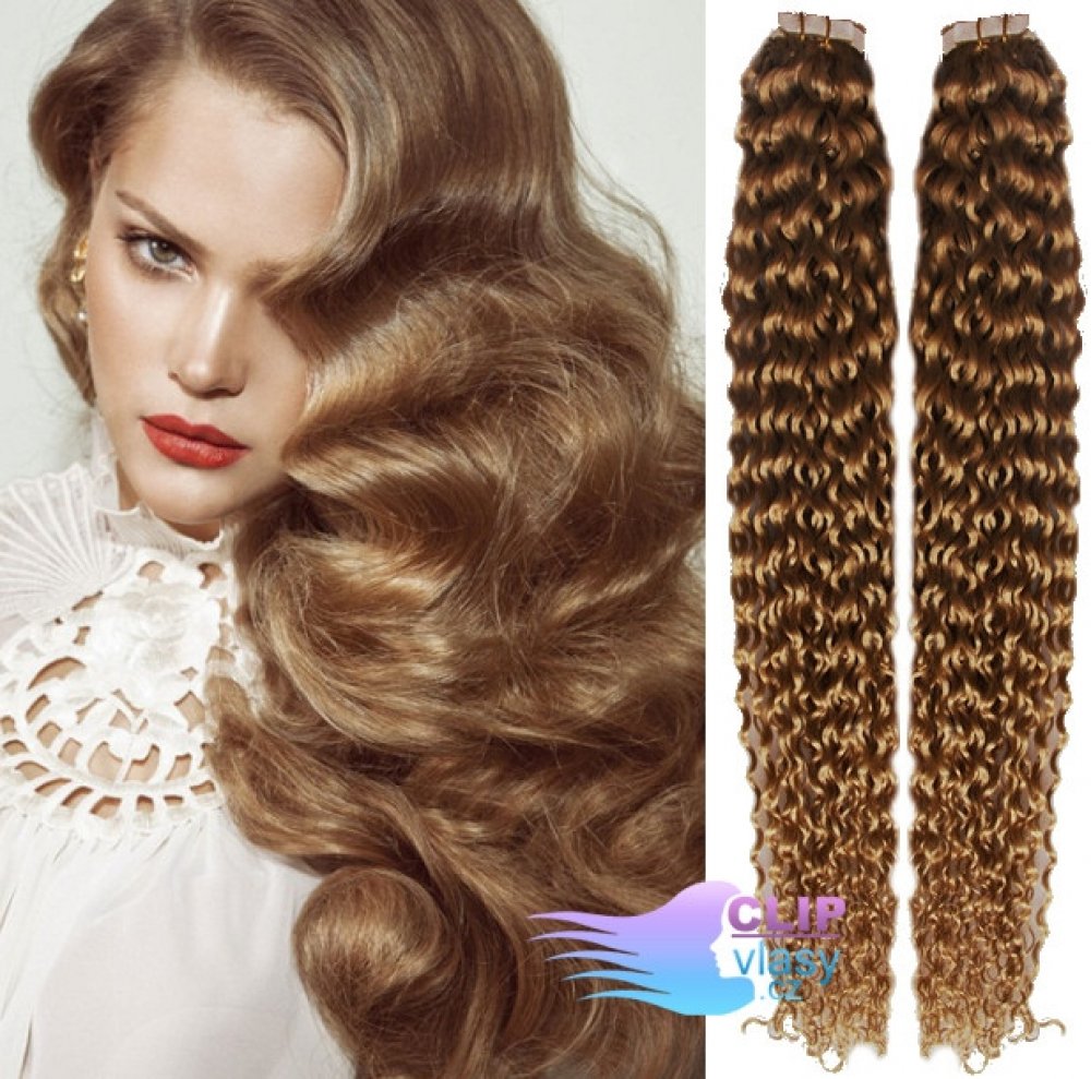 Kudrnaté Tape in 50cm vlasy REMY světle hnědá #12