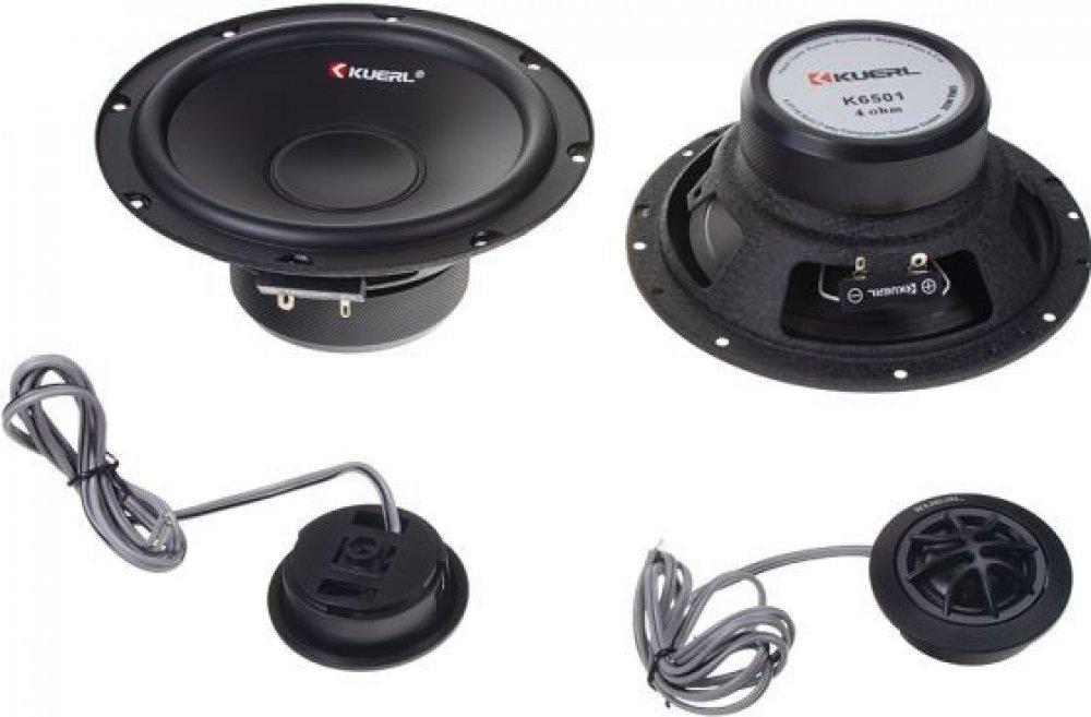 Vysoce kvalitní komponentní dvoupásmový kit, středobasový reproduktor + výhybka a výškové reproduktory.