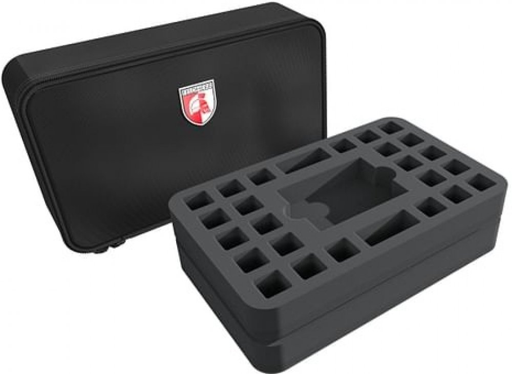 Kufr Feldherr MINI pro hru Star Wars Destiny pro 2 balíčky karet a 48 kostek. Kufr pojme až 70 karet v obalech, dále 48 kostek a žetonů. Obsah balení: 2x pěnový pořadač, 30 mm (každý pro 24 kostek, 35 karet v obalech a žetony) 1x pěnové víko Rozměry jednoho pořadače: 275 mm x 172 mm x 30 mm. Bez obsahu chlóru, acid free.